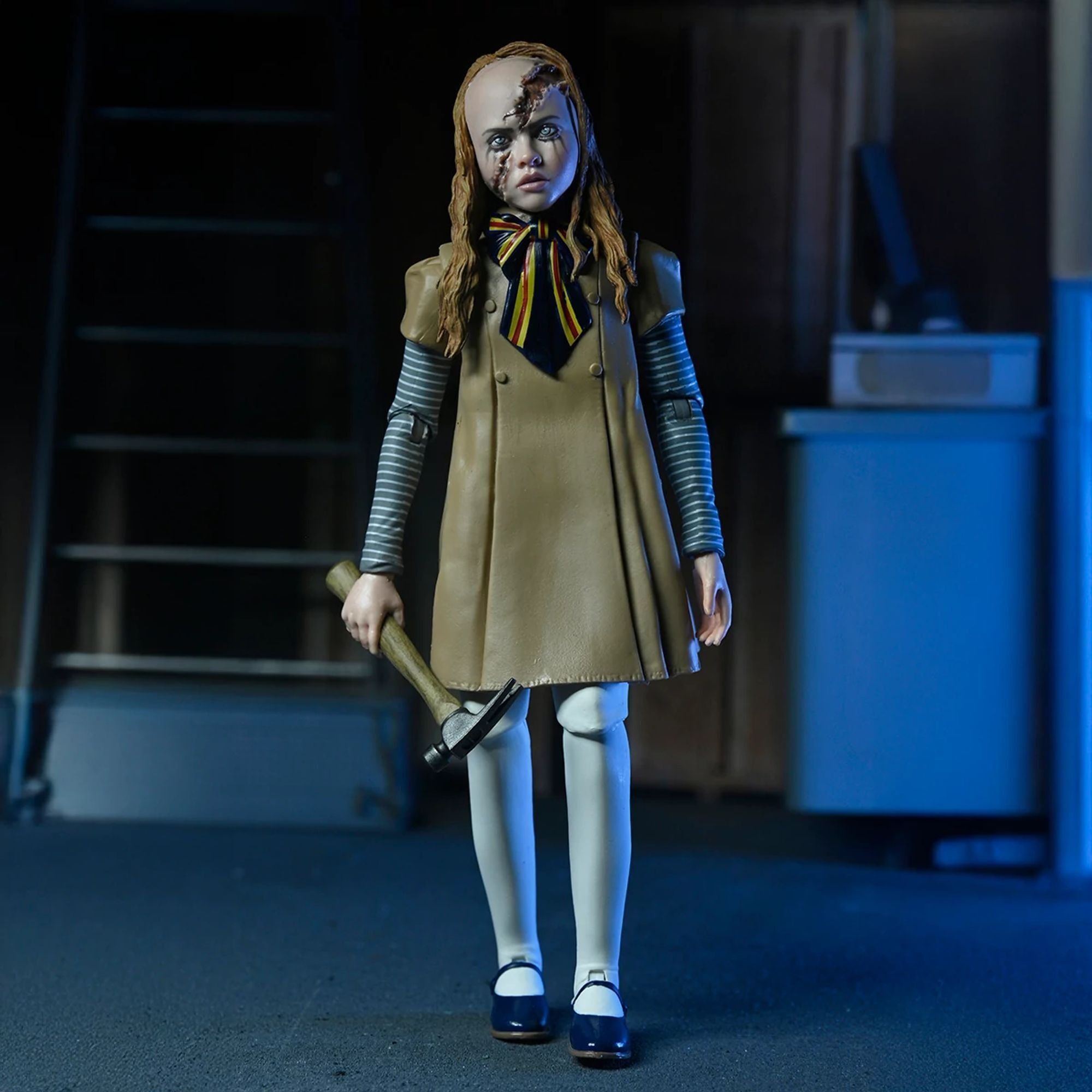 De Model 3 Generative Android (M3GAN) is ontworpen als de beste vriend van een ouder en geprogrammeerd als de beste vriend van een kind... Maar een zelfbewuste pop met een eigen leven kan sinistere gevolgen hebben. Deze beweegbare M3GAN-figuur van 18 cm past perfect bij zijn uiterlijk op het scherm. Accessoires zijn onder andere verwisselbare hoofden en handen, een door de strijd beschadigd hoofd, een robothoofd met verwisselbare frontjes, een schroevendraaier, een spijkerpistool, een hamer en een briefopener. Een geweldige aanwinst voor elk gezin! Wordt geleverd in een handige doos met kijkvenster en een openslaande klep. Hoogte: 18 cm