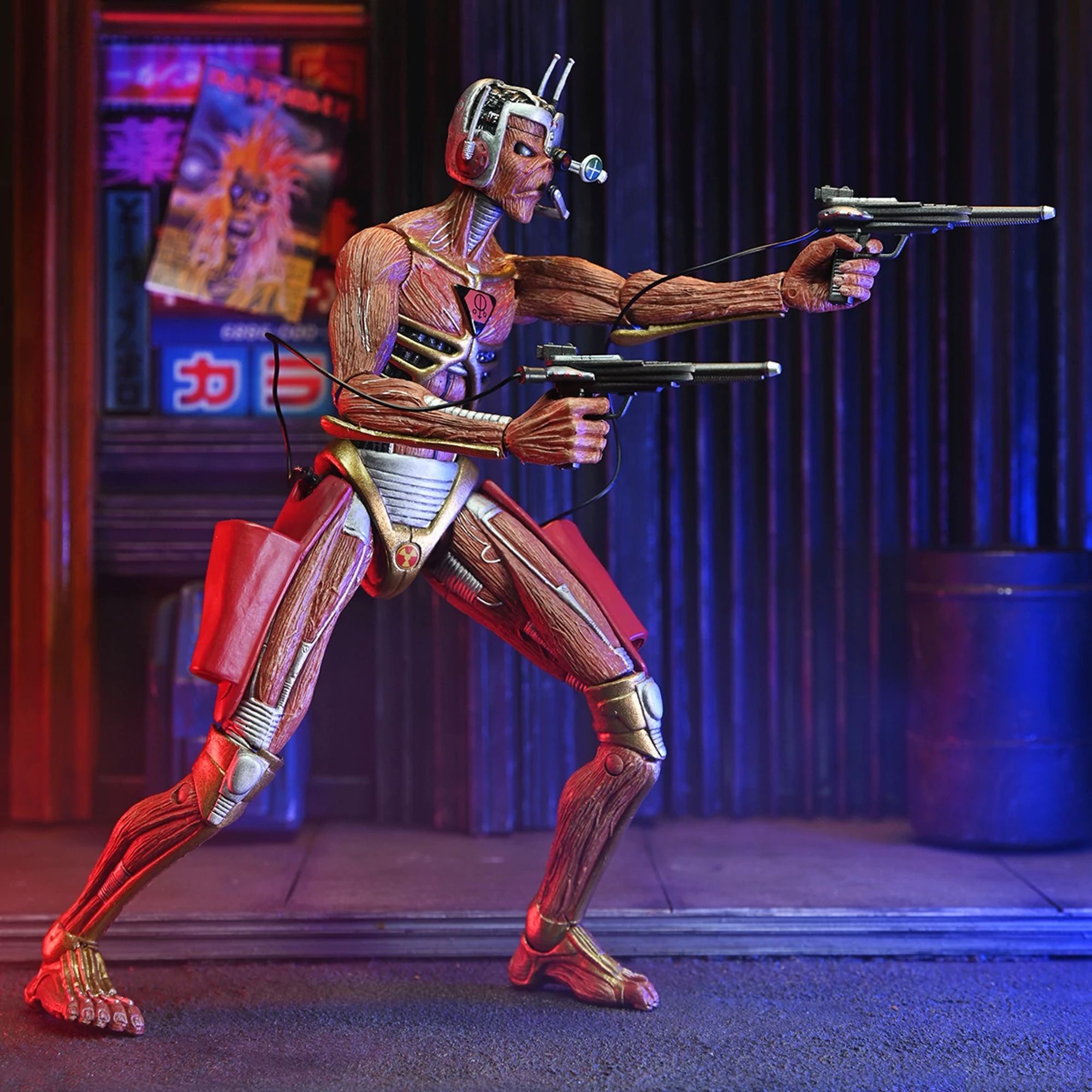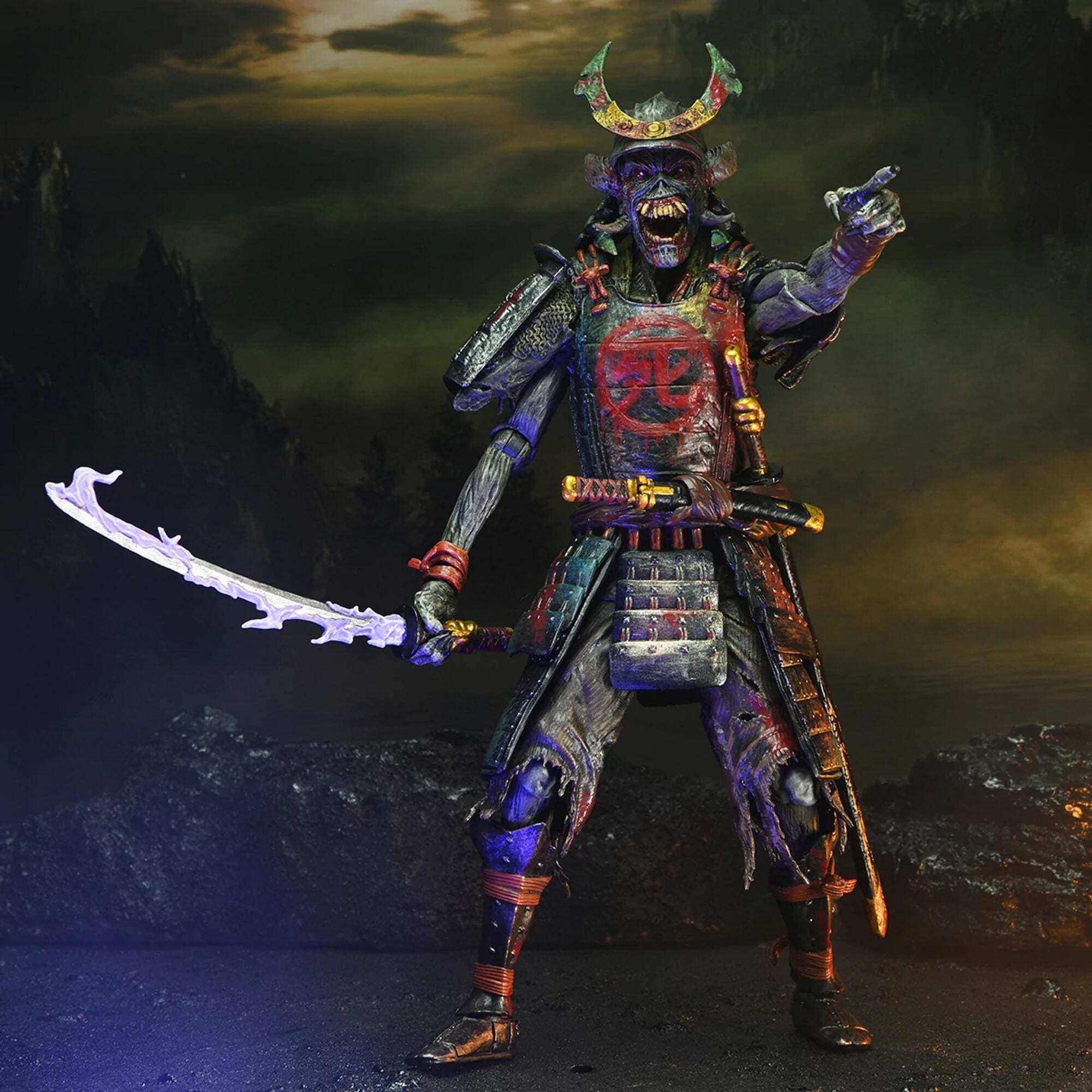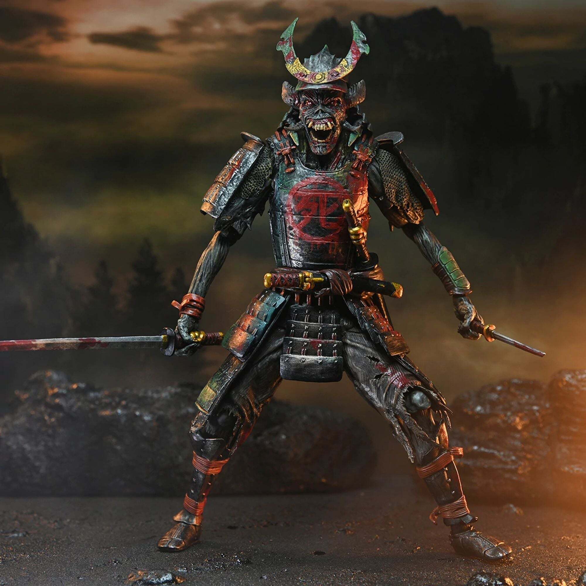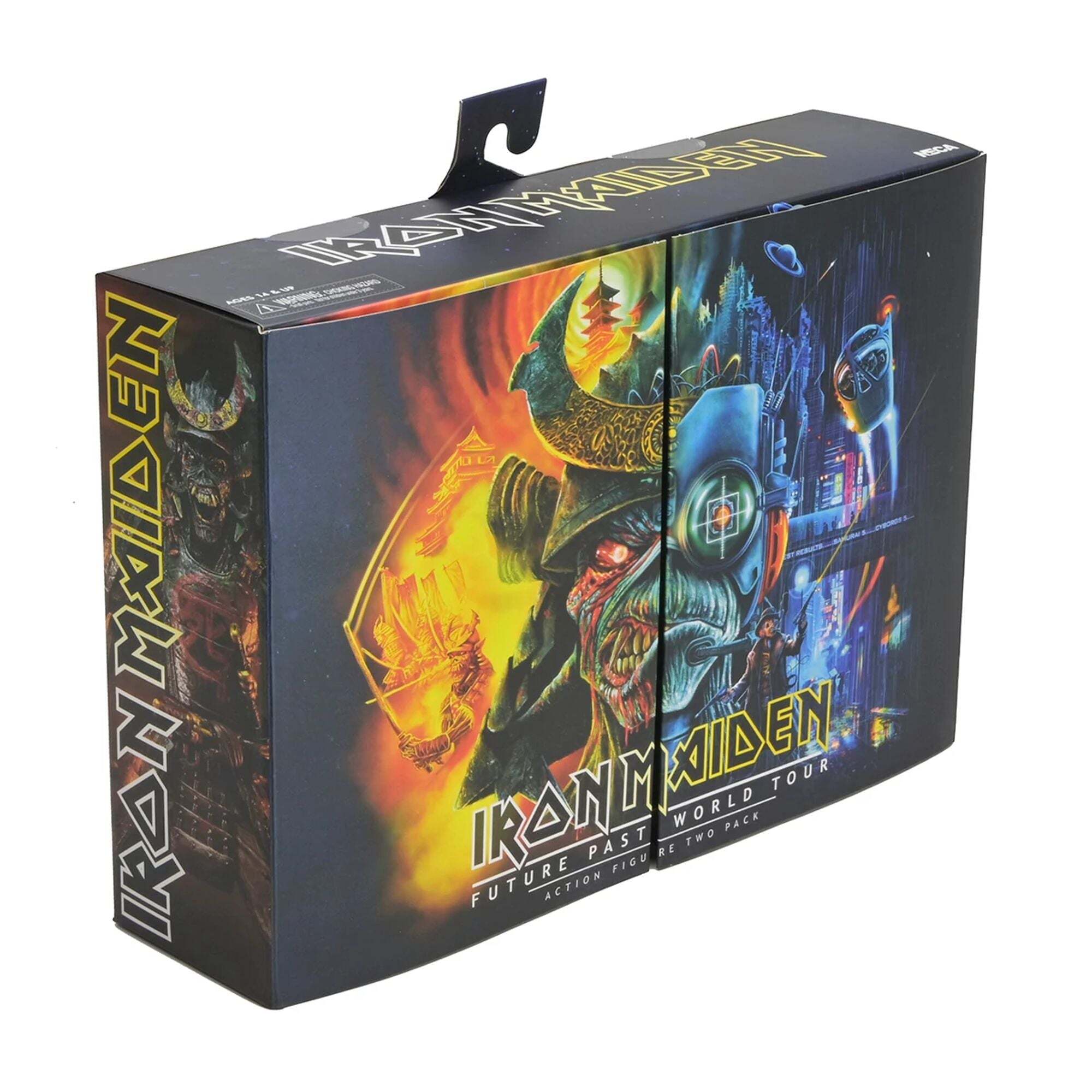Metalheads opgelet! Vier Iron Maidens Future Past Tour met hun iconische heavymetalmascotte Eddie in een dubbelpack! Sinds 1980 prijkt Eddie op de legendarische albumhoezen van de band. Dit NECA Ultimate-figurenpakket brengt een eerbetoon aan Eddie in twee vormen! Samurai Eddie, van de cover van het album SENJUTSU uit 2021, toont Eddie in samoeraiharnas. Cyborg Eddie is daarentegen gebaseerd op de futuristische cover van het klassieke album SOMEWHERE IN TIME uit 1986. Hoogte: 18 cm