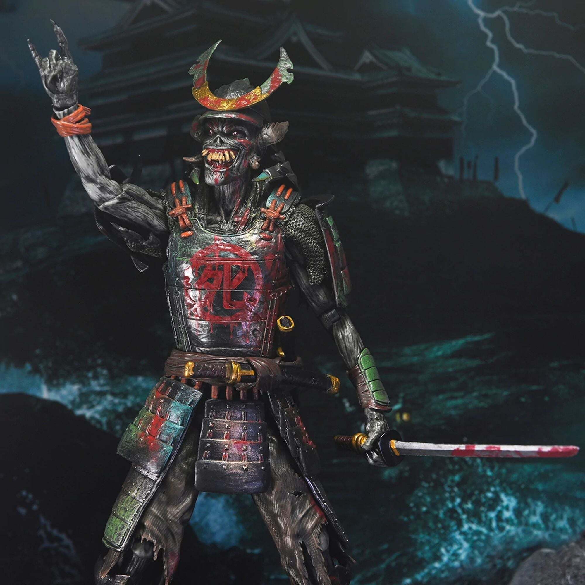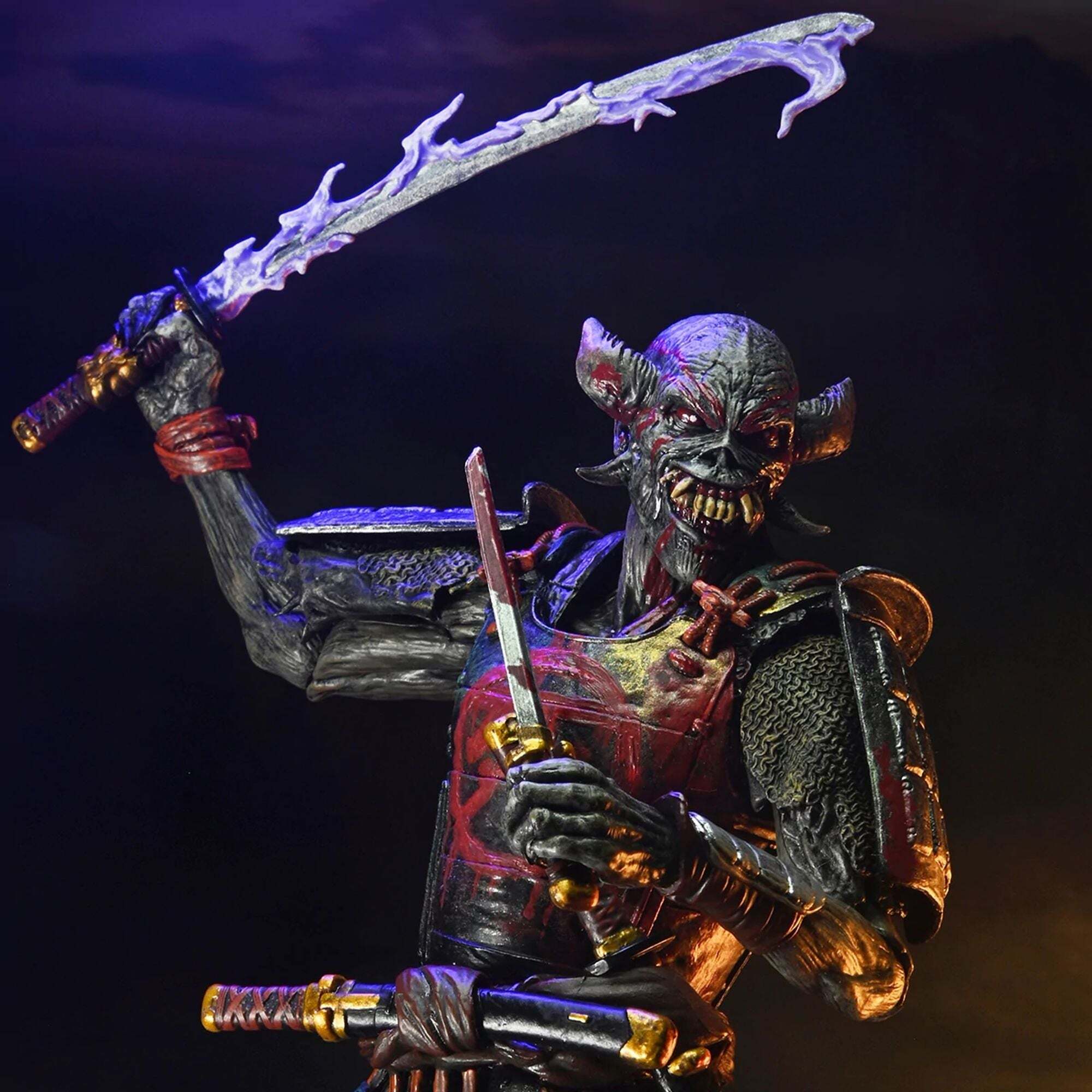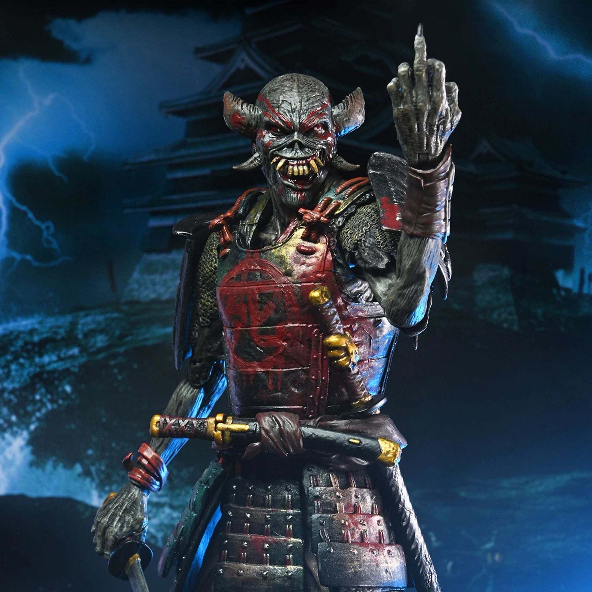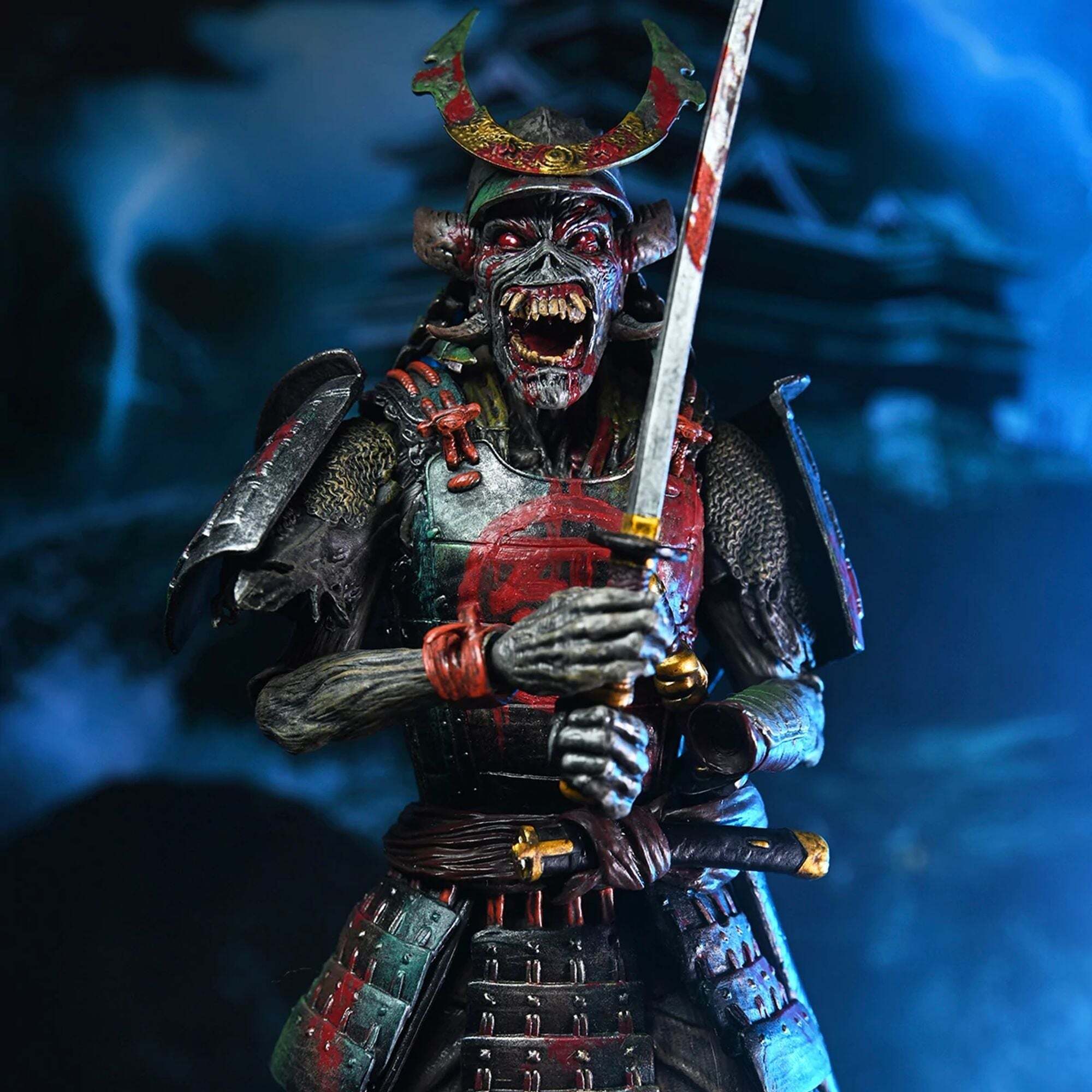 Metalheads opgelet! Vier Iron Maidens Future Past Tour met hun iconische heavymetalmascotte Eddie in een dubbelpack! Sinds 1980 prijkt Eddie op de legendarische albumhoezen van de band. Dit NECA Ultimate-figurenpakket brengt een eerbetoon aan Eddie in twee vormen! Samurai Eddie, van de cover van het album SENJUTSU uit 2021, toont Eddie in samoeraiharnas. Cyborg Eddie is daarentegen gebaseerd op de futuristische cover van het klassieke album SOMEWHERE IN TIME uit 1986. Hoogte: 18 cm