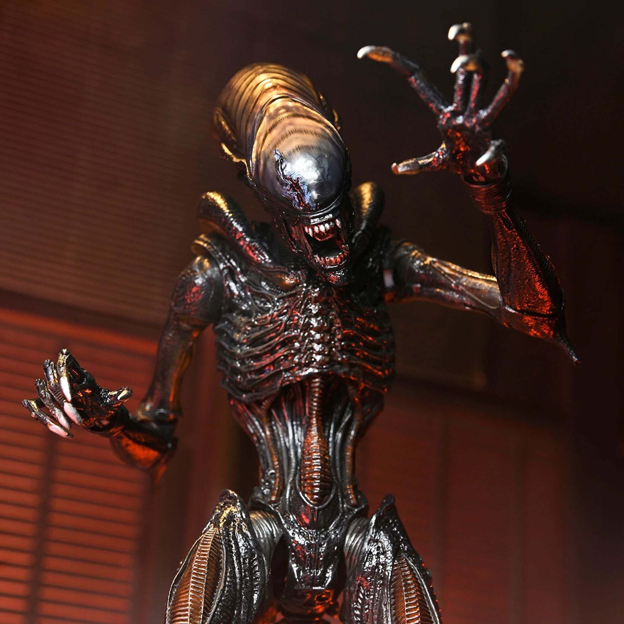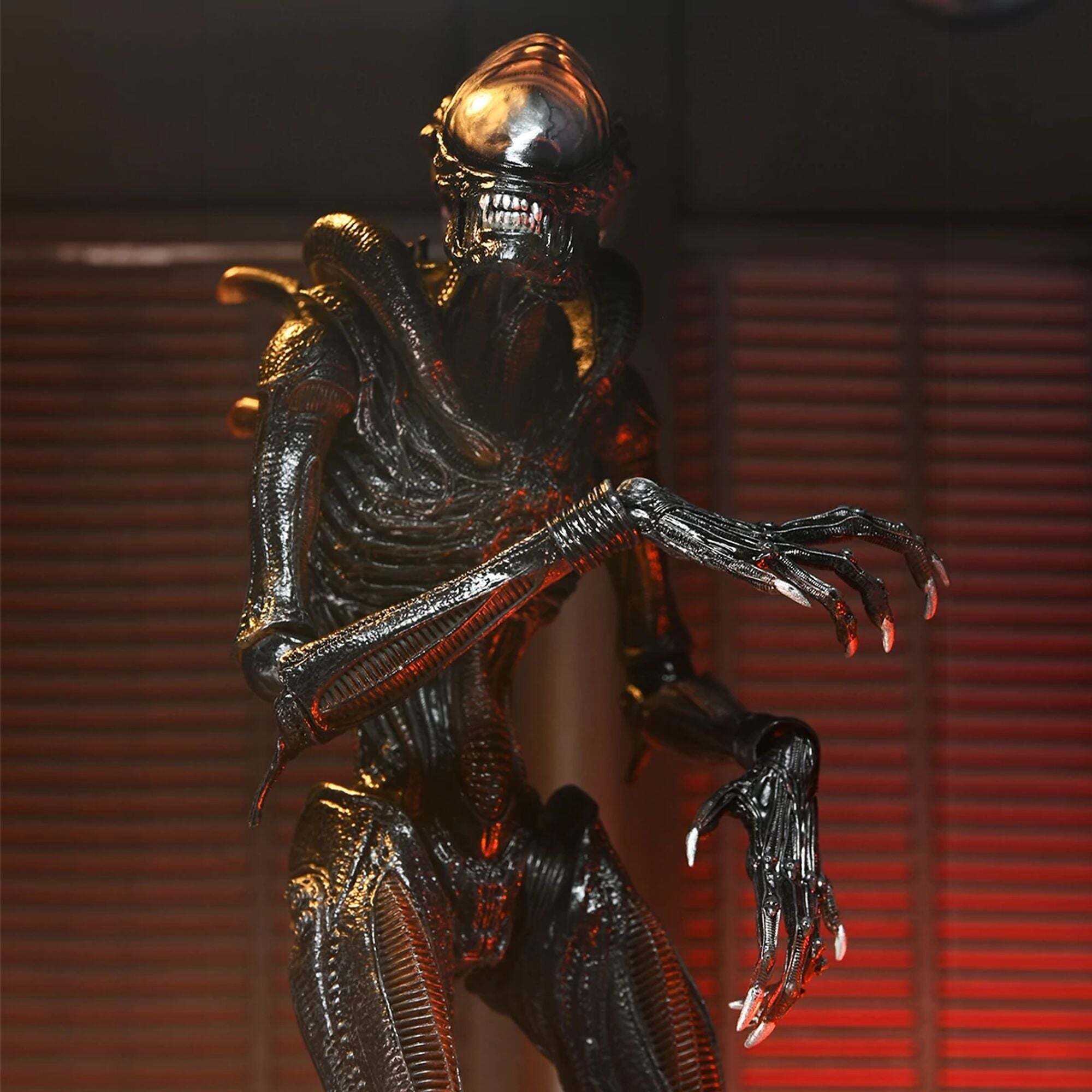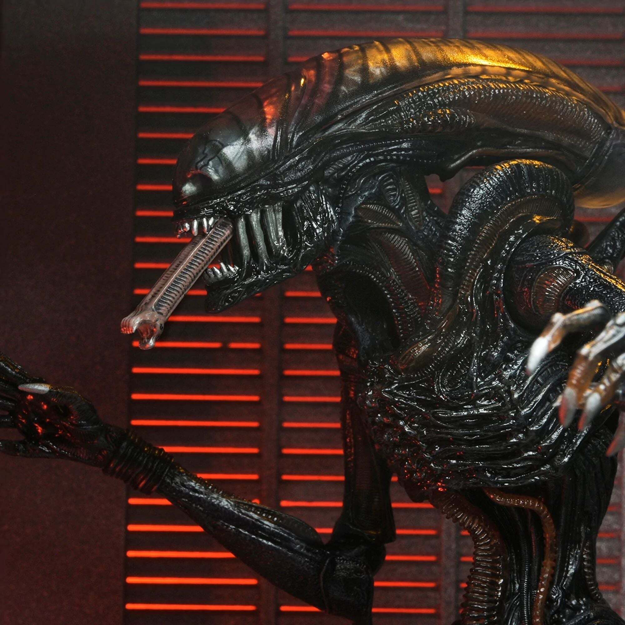 De ultieme versie van het NECA Scorched Xenomorph-actiefiguur is ruim 18 cm hoog, heeft 23 bewegingspunten en een openende kaak met een uitschuifbare binnenmond en een beweegbare staart.