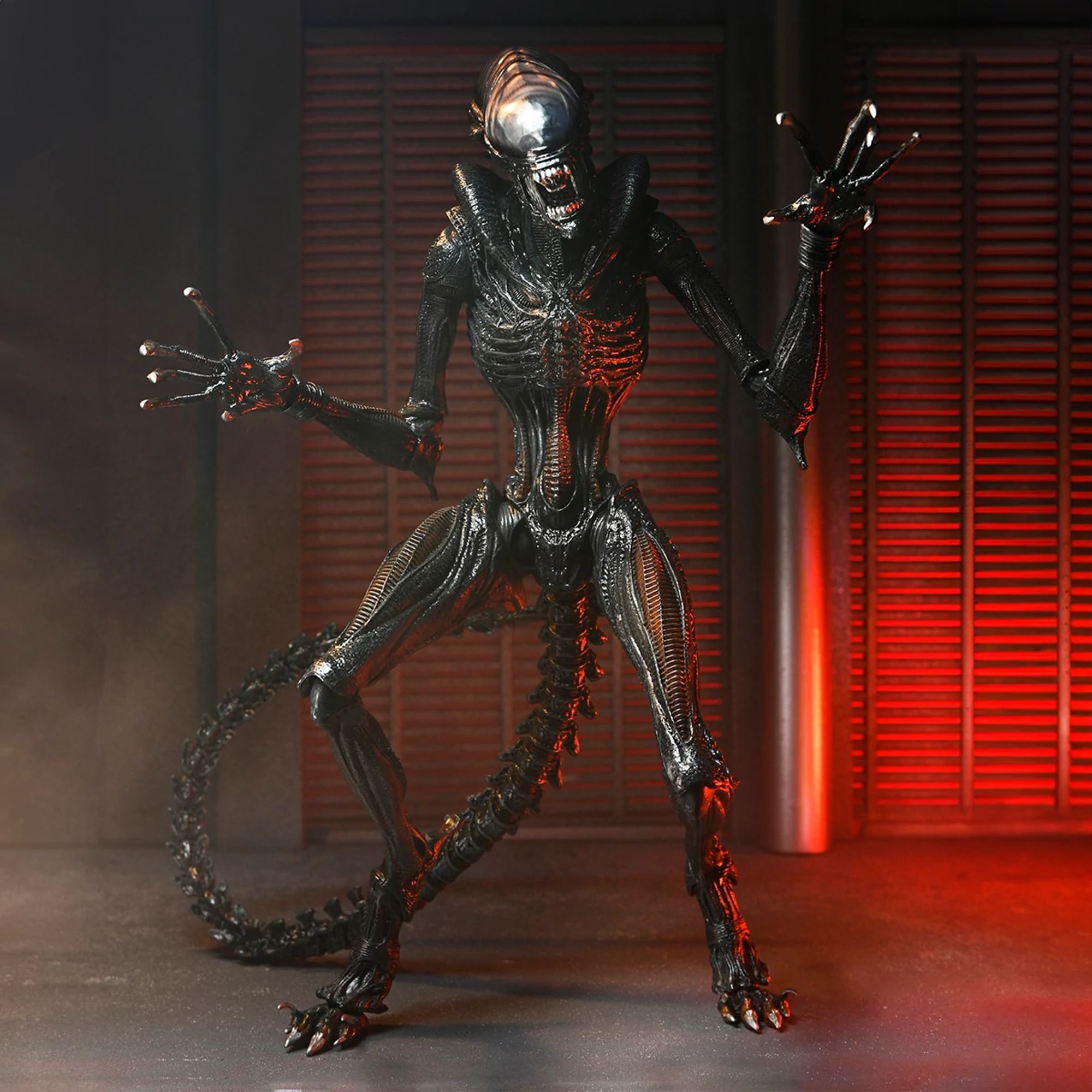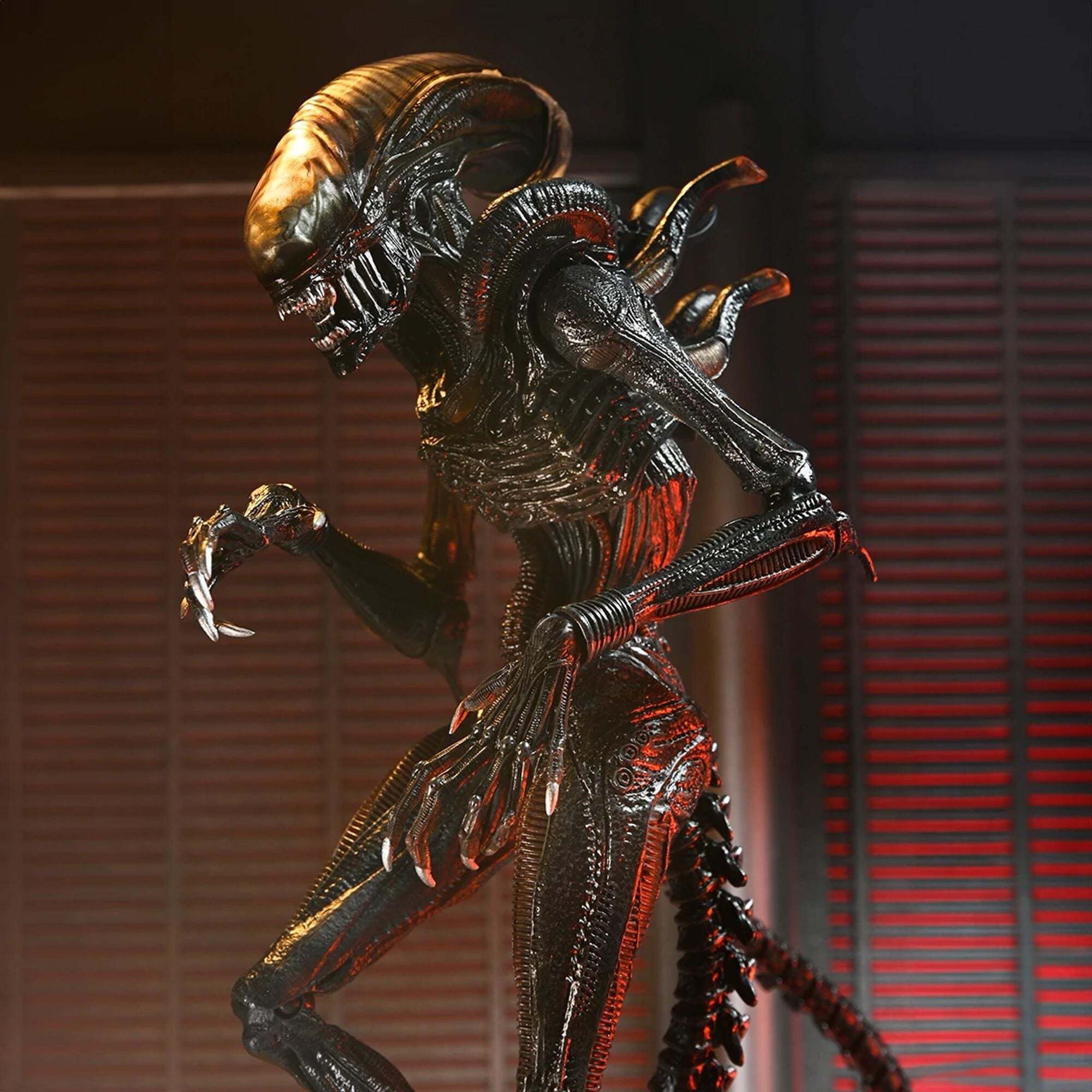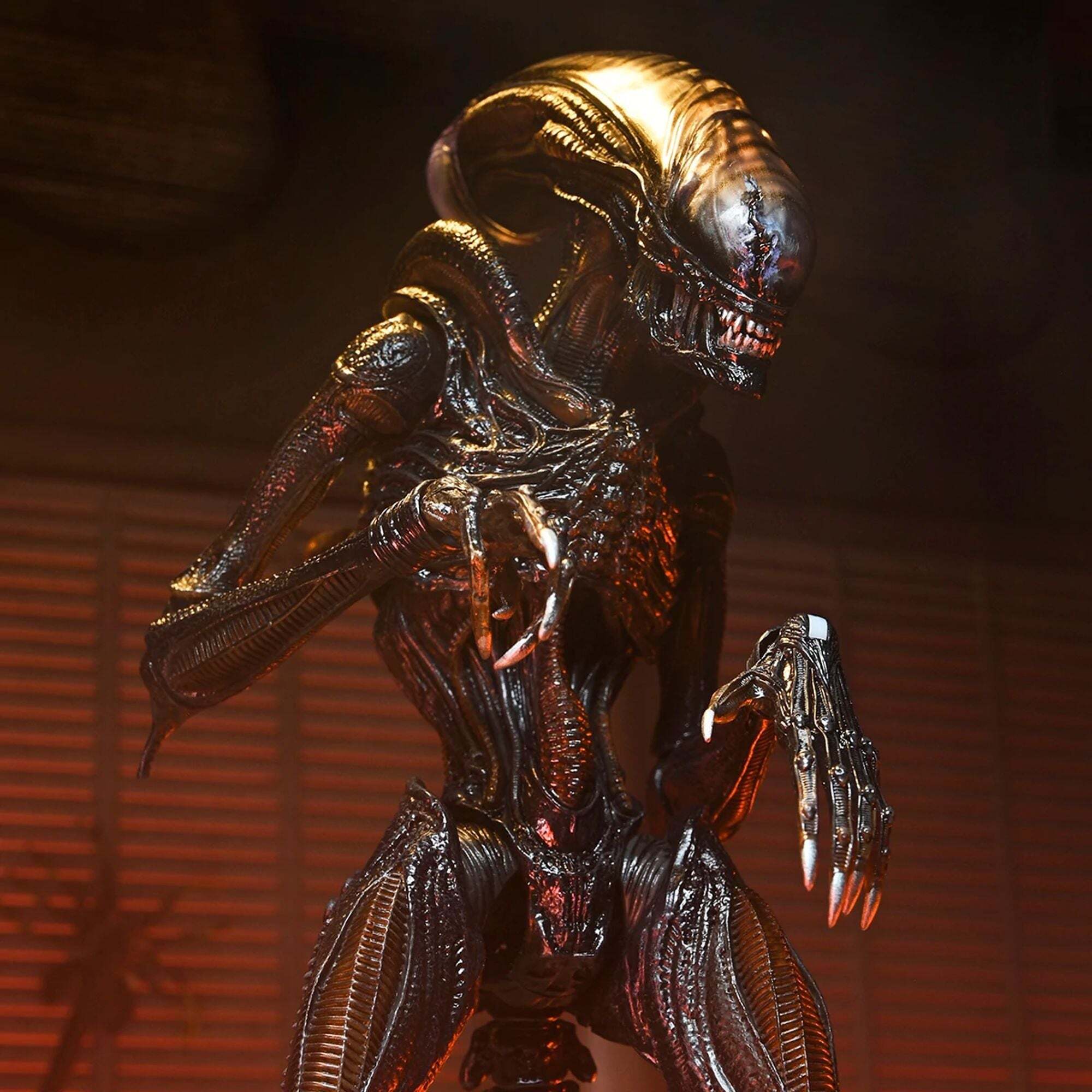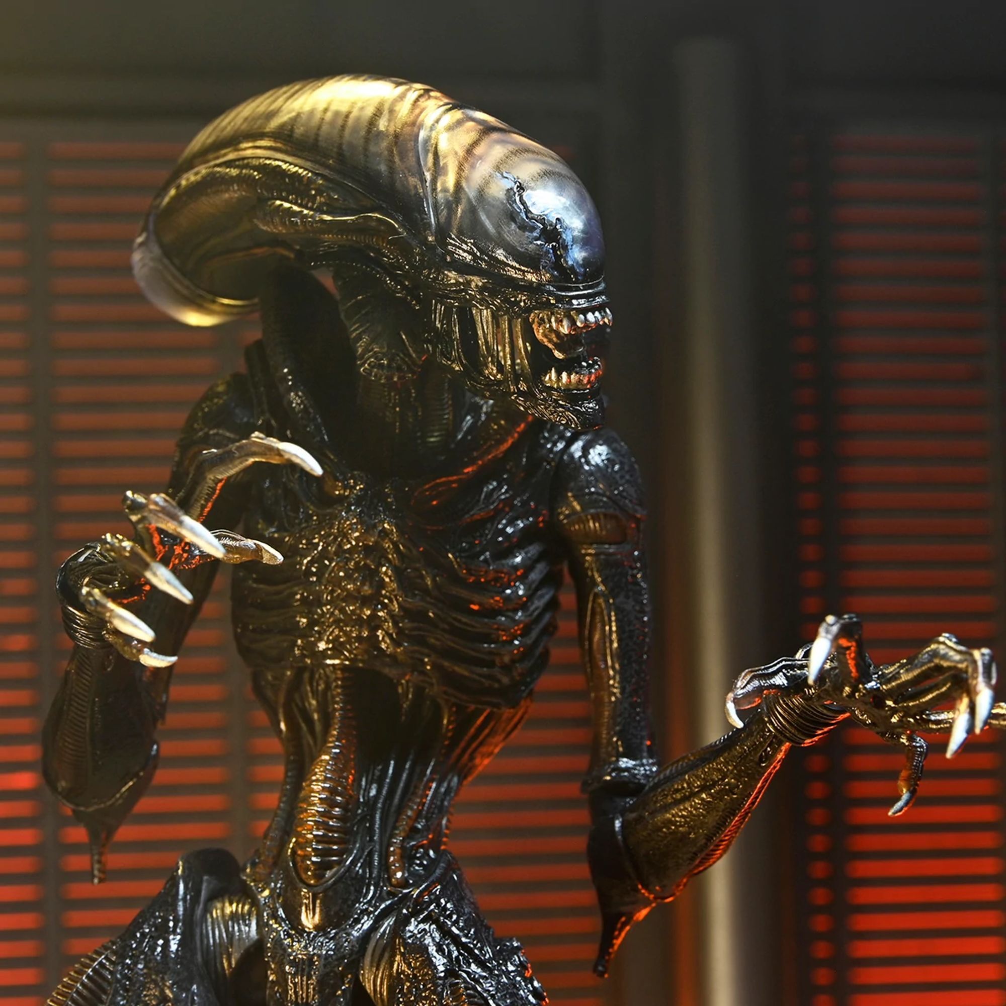 De ultieme versie van het NECA Scorched Xenomorph-actiefiguur is ruim 18 cm hoog, heeft 23 bewegingspunten en een openende kaak met een uitschuifbare binnenmond en een beweegbare staart.