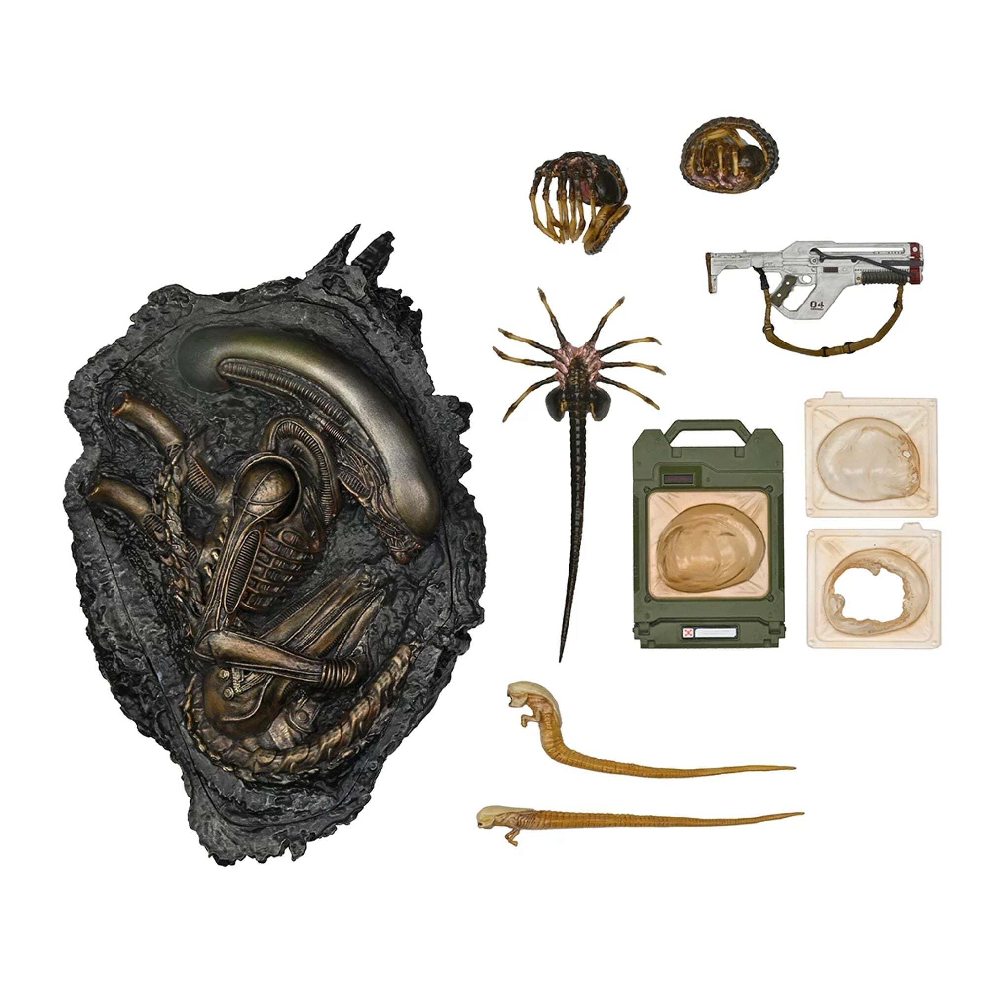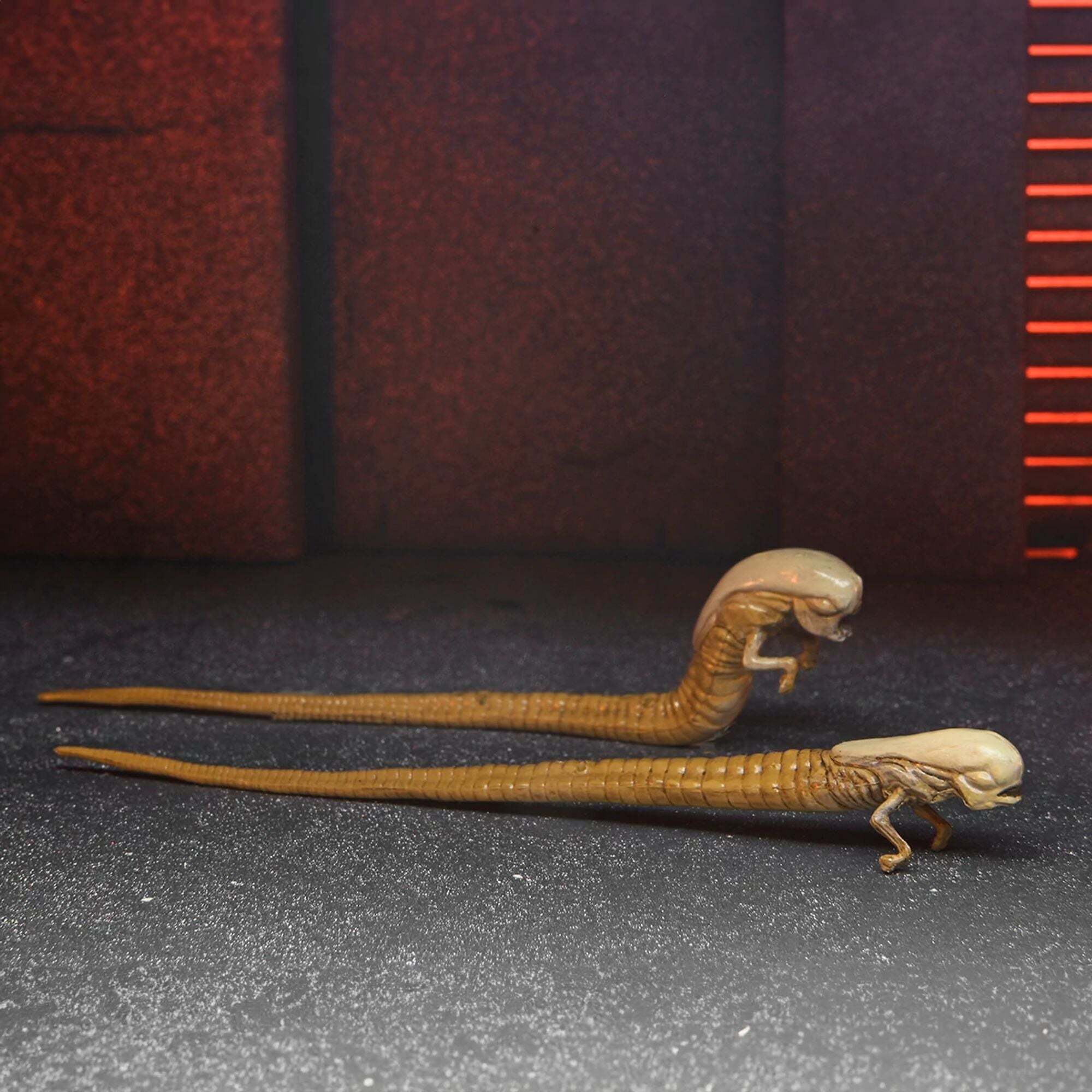 Twee facehuggers, waaronder één die om het hoofd van de meeste NECA figuren op schaal 7" past (figuur niet inbegrepen).