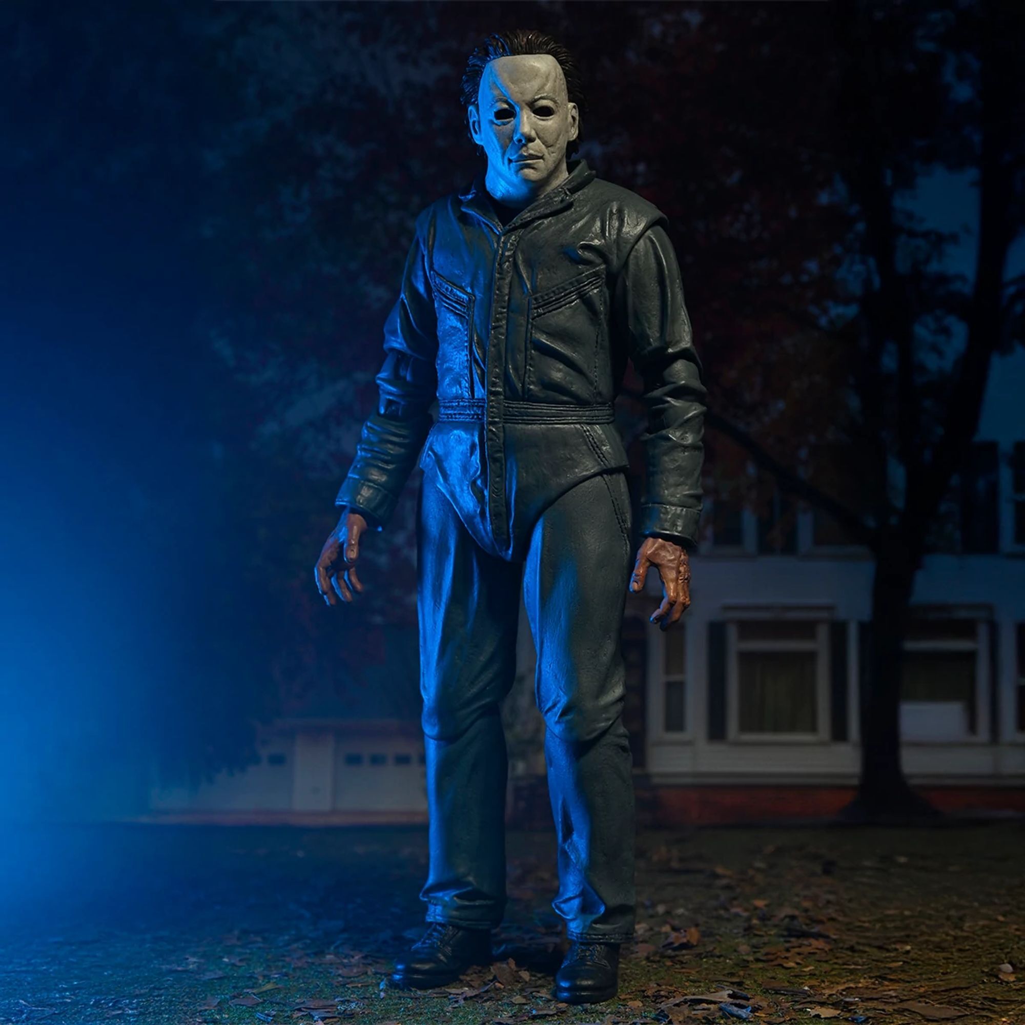 Uit het zesde deel van de Halloween franchise, The Curse of Michael Myers, brengt deze ultieme NECA-figuur de beruchte gemaskerde moordenaar tot leven, vastberadener dan ooit om Haddonfield te verwoesten voor de mysterieuze Cult of Thorn. Met een lengte van ongeveer 18 cm (7 inch) bevat deze zeer gedetailleerde figuur meerdere verwisselbare hoofden (waaronder één met een afneembaar masker), diverse handopties en een indrukwekkend arsenaal aan accessoires: bijl, kapmes, koevoet, keukenmessen, een zak met runen, offerkaarsen, injectiespuiten en zelfs een pompoen. Het geheel is afgewerkt met een "Strode Realty"-bord met een uitsnede van Michael Myers. Verpakt in een verzamelvriendelijke vensterdoos met een te openen klep. Hoogte: 18 cm