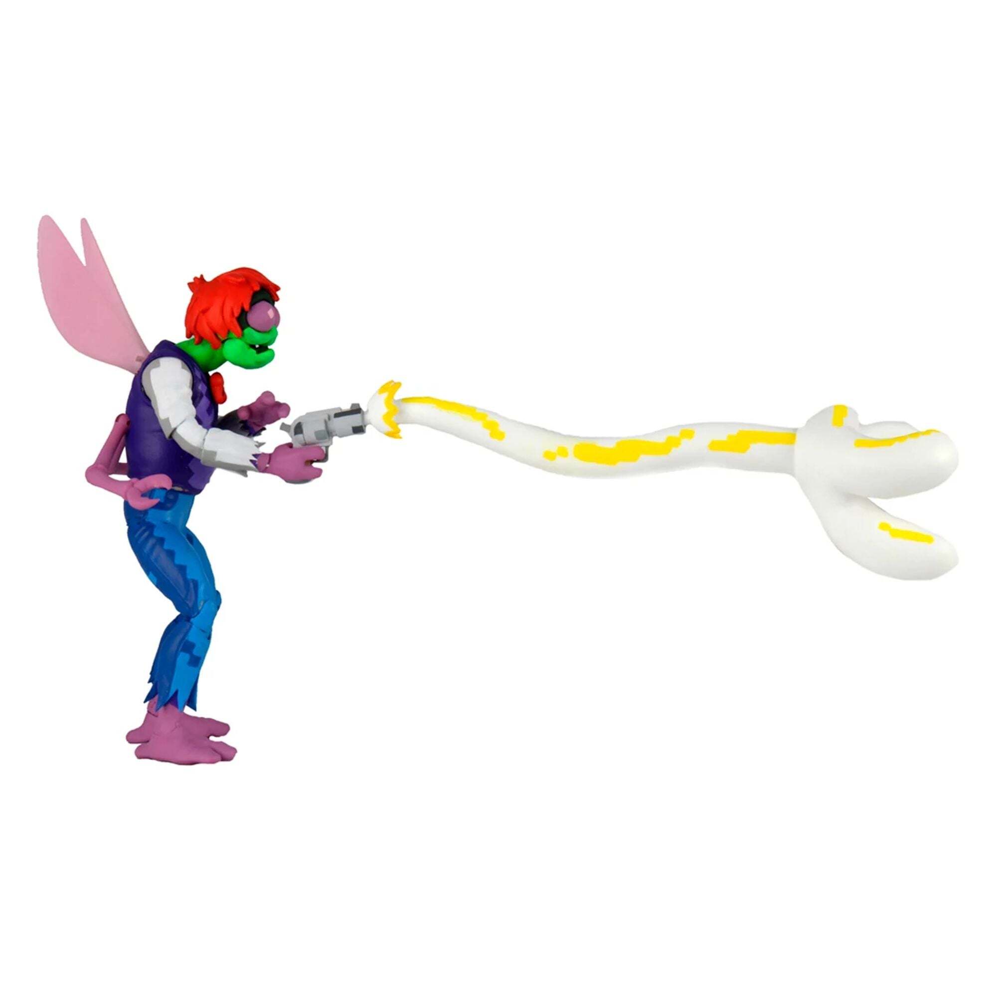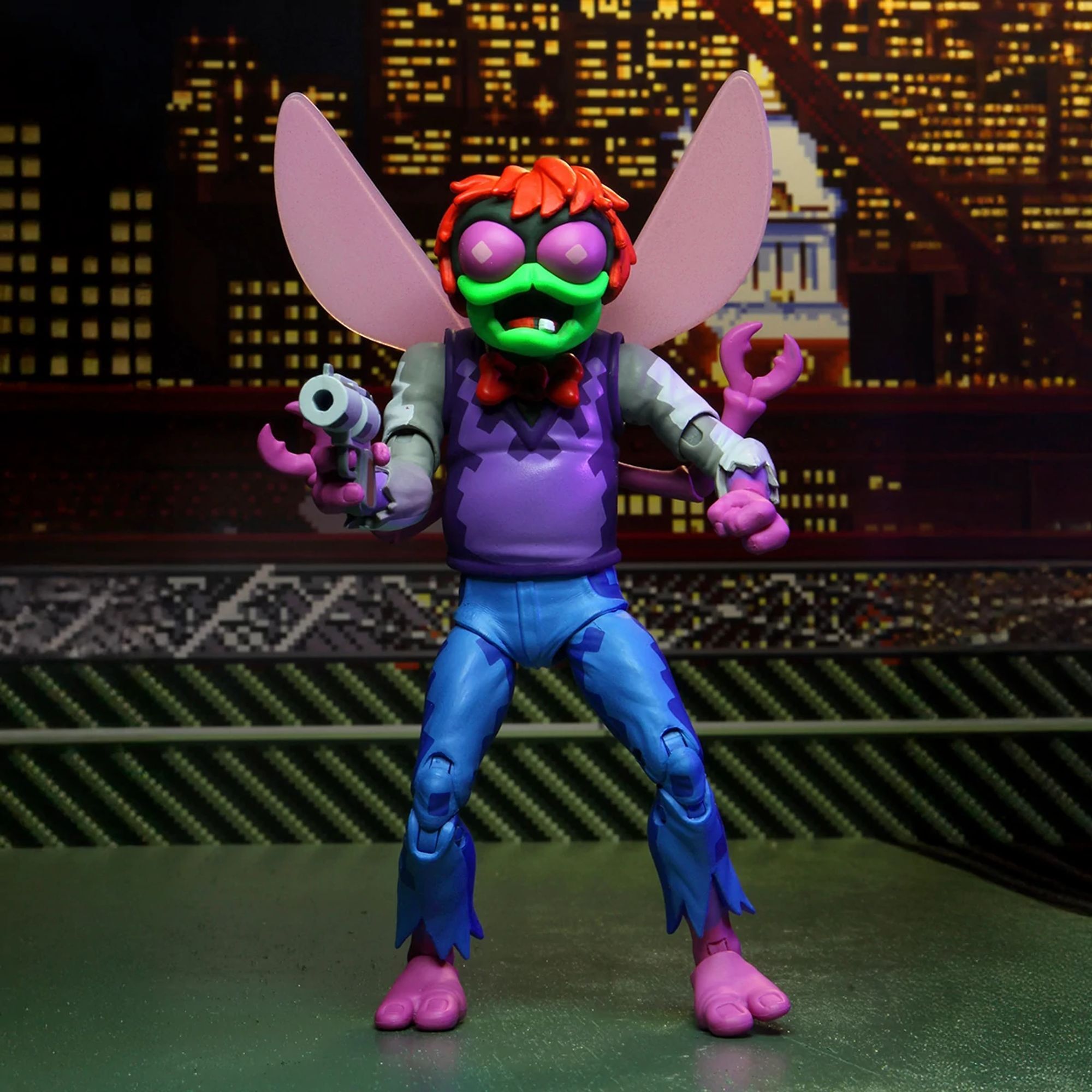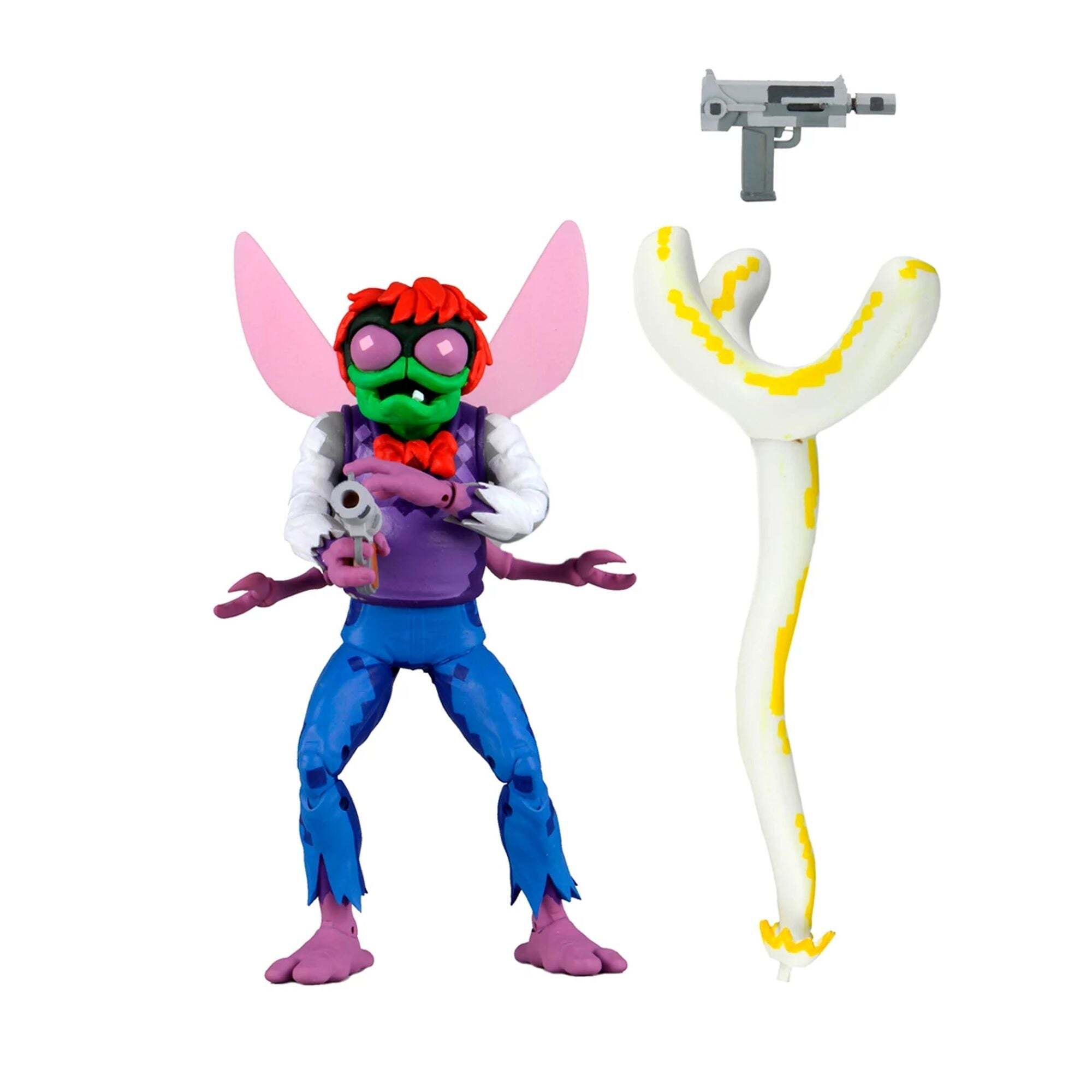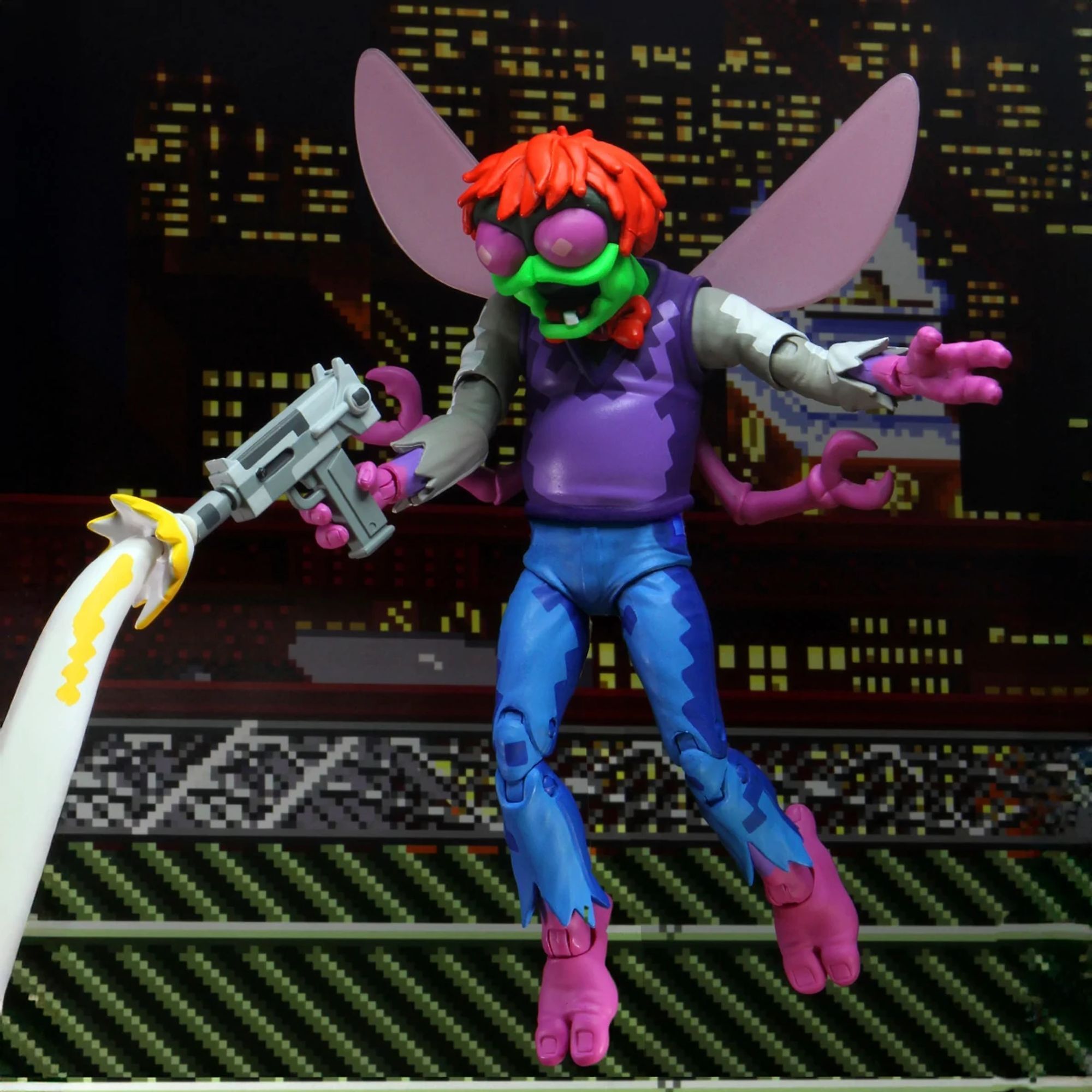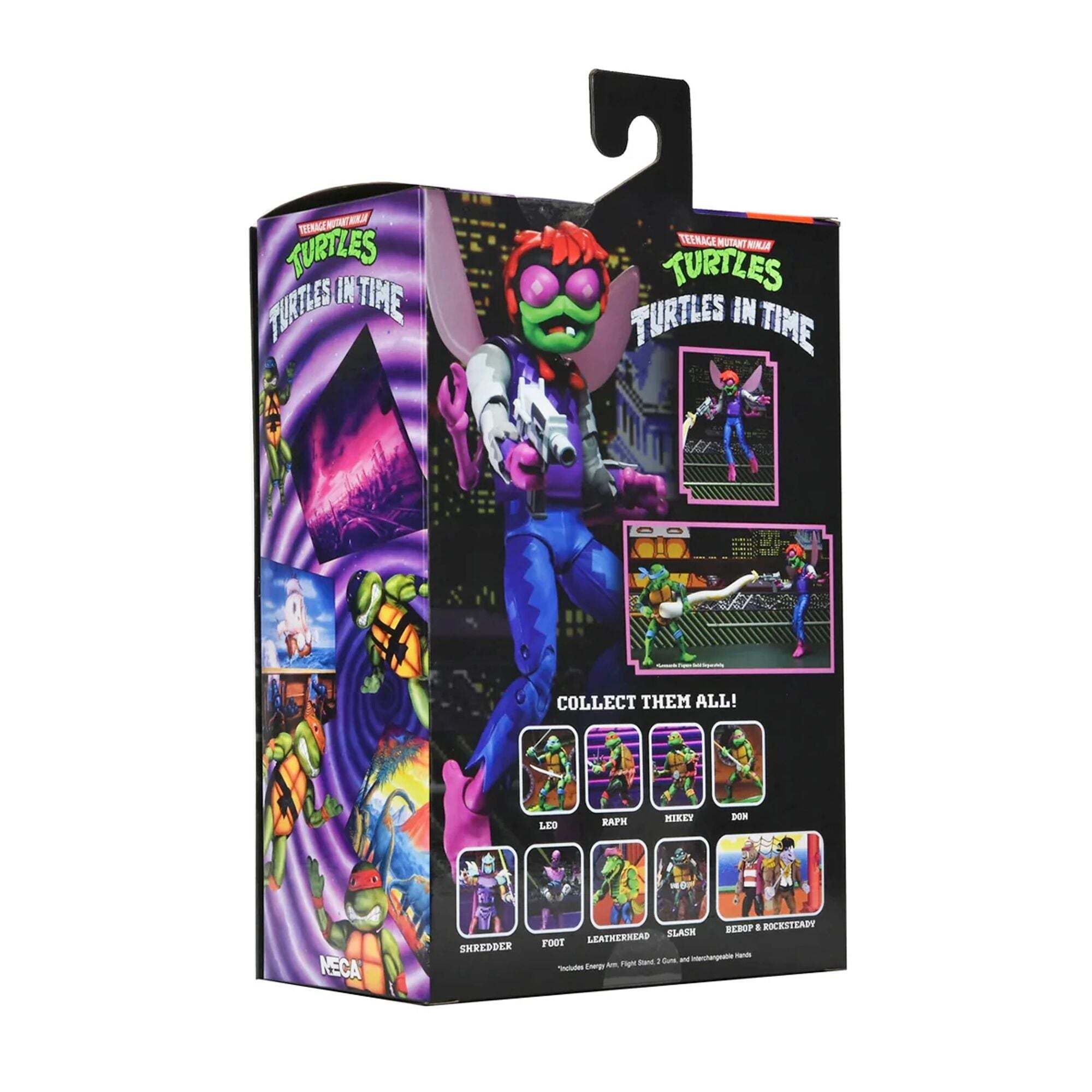 Het is tijd om het op te nemen tegen Baxter Stockman, de allereerste eindbaas uit de populaire arcadegame Turtles in Time. Deze gemuteerde vlieg is beweegbaar, met beweegbare vleugels, middenpoten en zelfs een onderkaak. De Ultimate Baxter-figuur wordt geleverd met twee stralenpistolen en een beweegbare energiehand waarmee je Turtles kunt vangen. De speciale verflaag reproduceert de gepixelde look van de videogame, voor een getrouwe weergave op het scherm. Alles geleverd in de "Ultimate" verzamelverpakking. Hoogte: 18 cm