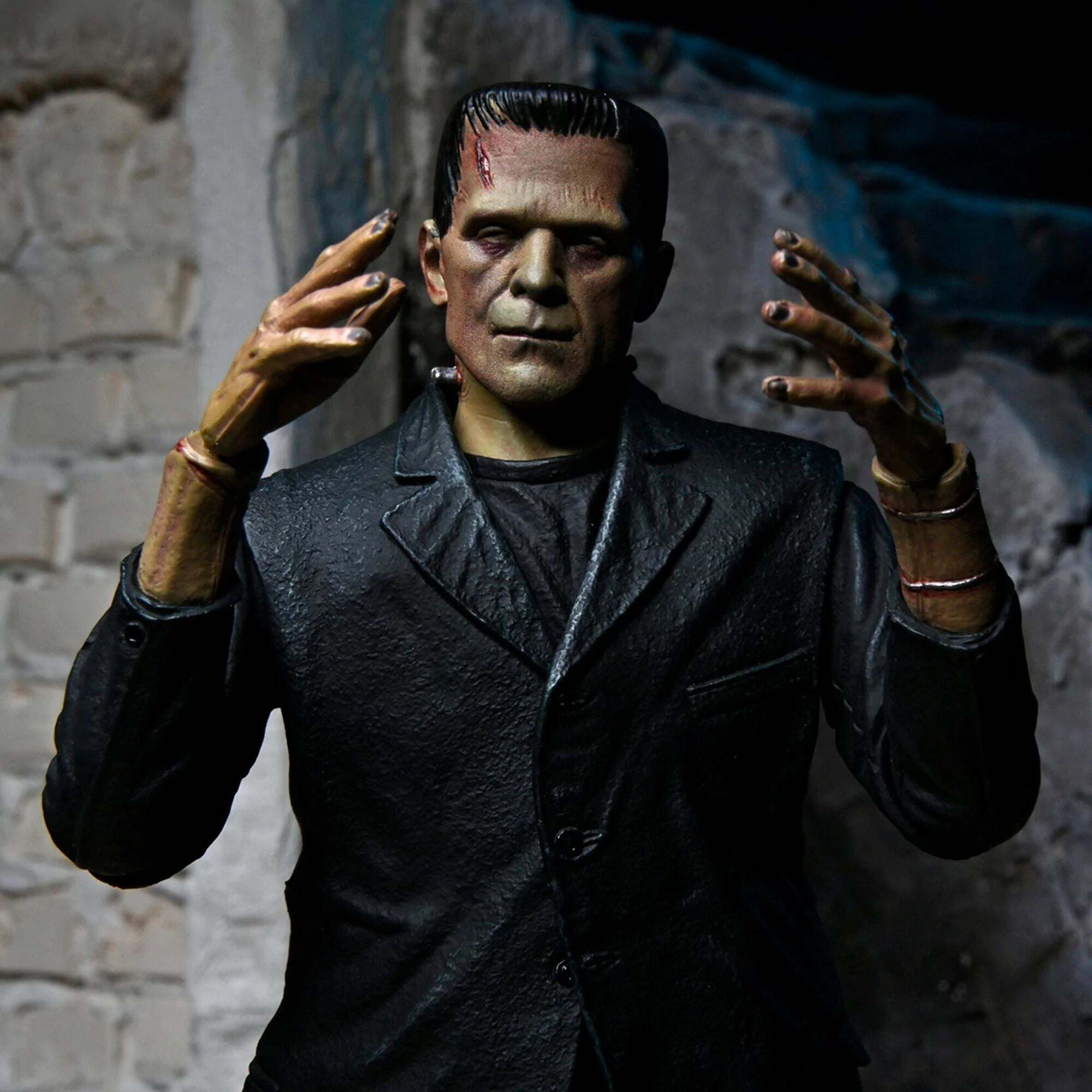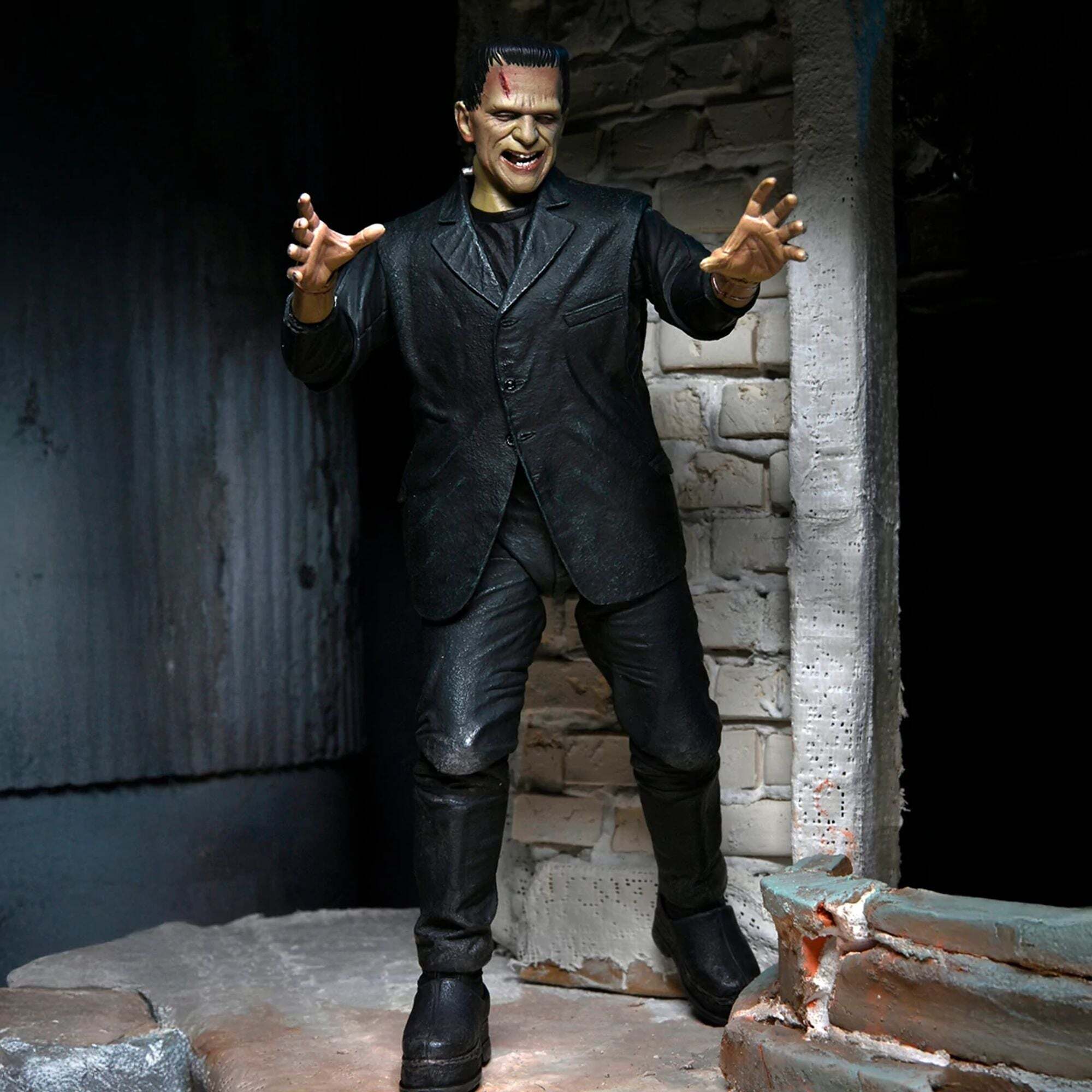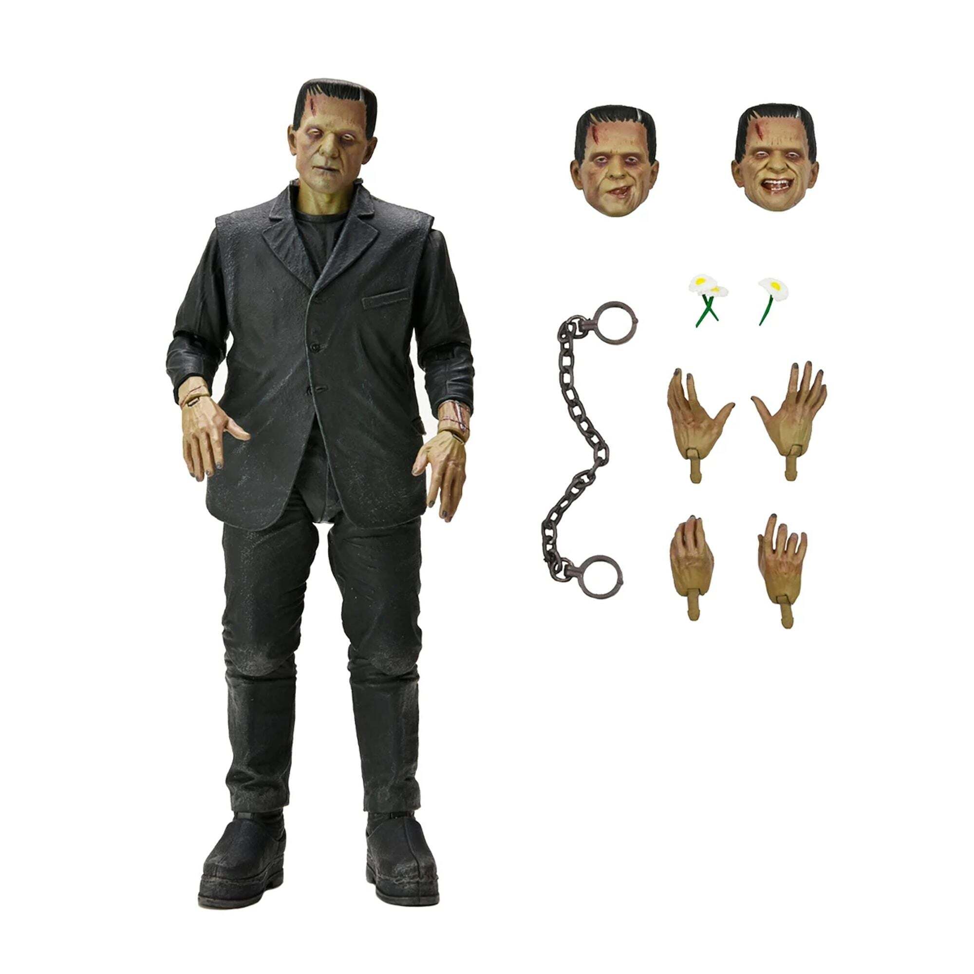 Ter ere van de 90e verjaardag van de klassieke film Frankenstein introduceert NECA met trots de Universal Monsters in zijn Ultimate-actiefigurenlijn! Het beeld is een eerbetoon aan Boris Karloffs ontroerende interpretatie van het misbegrepen monster, hier gepresenteerd in een gekleurde versie. Het 18 cm grote beeld wordt geleverd met talloze accessoires: 3 verwisselbare hoofden, 6 verwisselbare handen, kettingen en een boeket madeliefjes. Alles verpakt in een speciale jubileumverpakking voor verzamelaars. Hoogte: 7 inch