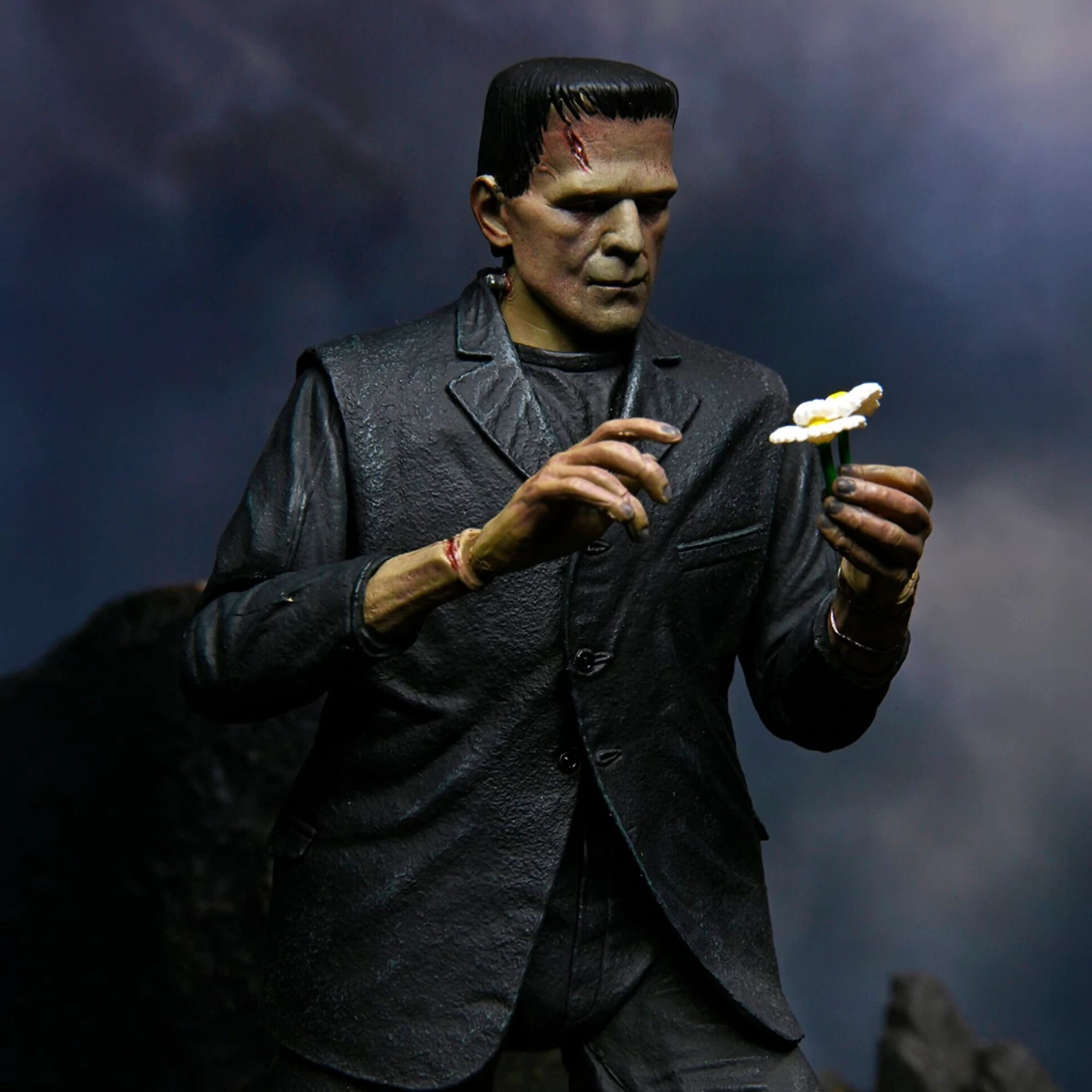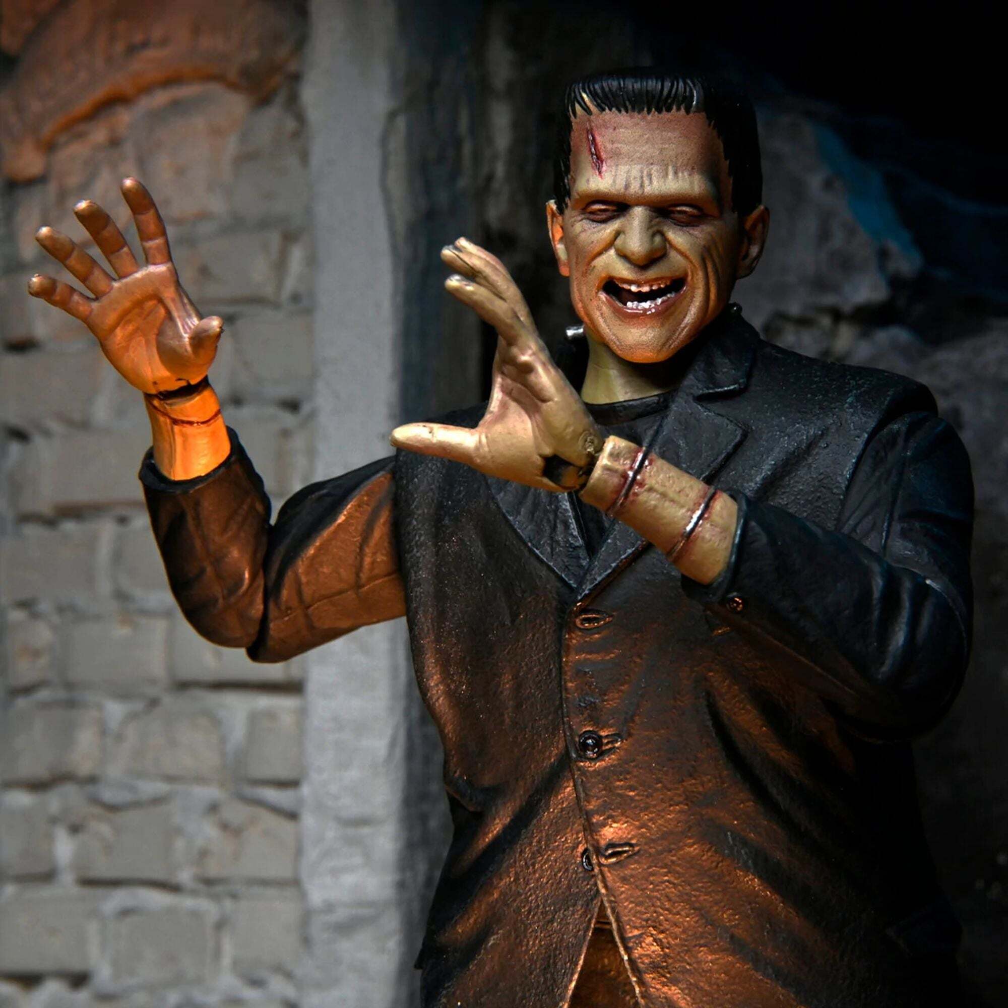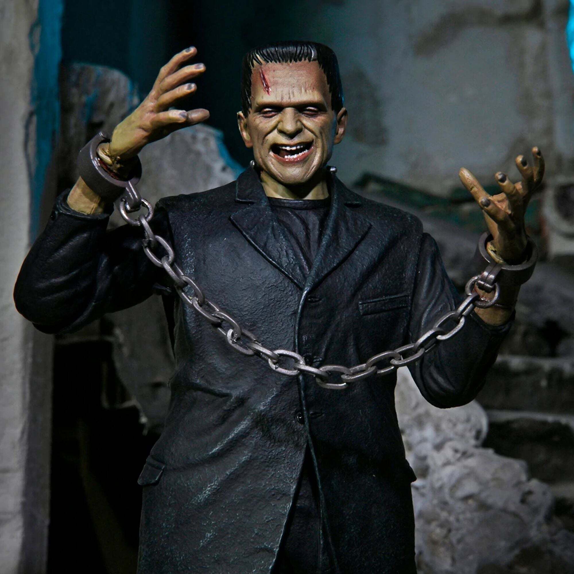 Ter ere van de 90e verjaardag van de klassieke film Frankenstein introduceert NECA met trots de Universal Monsters in zijn Ultimate-actiefigurenlijn! Het beeld is een eerbetoon aan Boris Karloffs ontroerende interpretatie van het misbegrepen monster, hier gepresenteerd in een gekleurde versie. Het 18 cm grote beeld wordt geleverd met talloze accessoires: 3 verwisselbare hoofden, 6 verwisselbare handen, kettingen en een boeket madeliefjes. Alles verpakt in een speciale jubileumverpakking voor verzamelaars. Hoogte: 7 inch