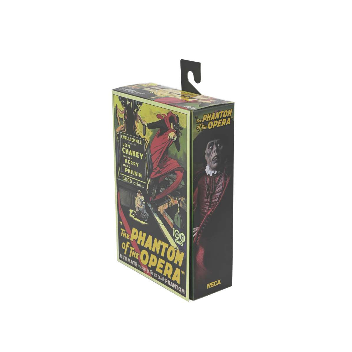 Vier een eeuw horrorcinema! Ter ere van de 100e verjaardag van de stomme film The Phantom of the Opera uit 1925 brengt NECA een eerbetoon aan deze klassieker met een spectaculaire figuur van 18 cm. Het toont het Spook (Erik) in zijn beroemde "Rode Dood"-vermomming op het gemaskerde bal, gespeeld met macabere elegantie door Lon Chaney. Achter zijn schedelvormige masker bespiedt hij Christine en Raoul vanaf het dak van de Opera van Parijs. Dit verzamelobject bevat: – Een stoffen cape – Een hoed met brede rand – Een staf versierd met een schedel – Meerdere verwisselbare hoofden en handen, compatibel met andere NECA Phantom of the Opera- figuren (apart verkrijgbaar). Deze figuur, geleverd in een verzamelbox, is een must-have voor fans van horrorfilms en klassieke cinema. Hoogte: 7 inch