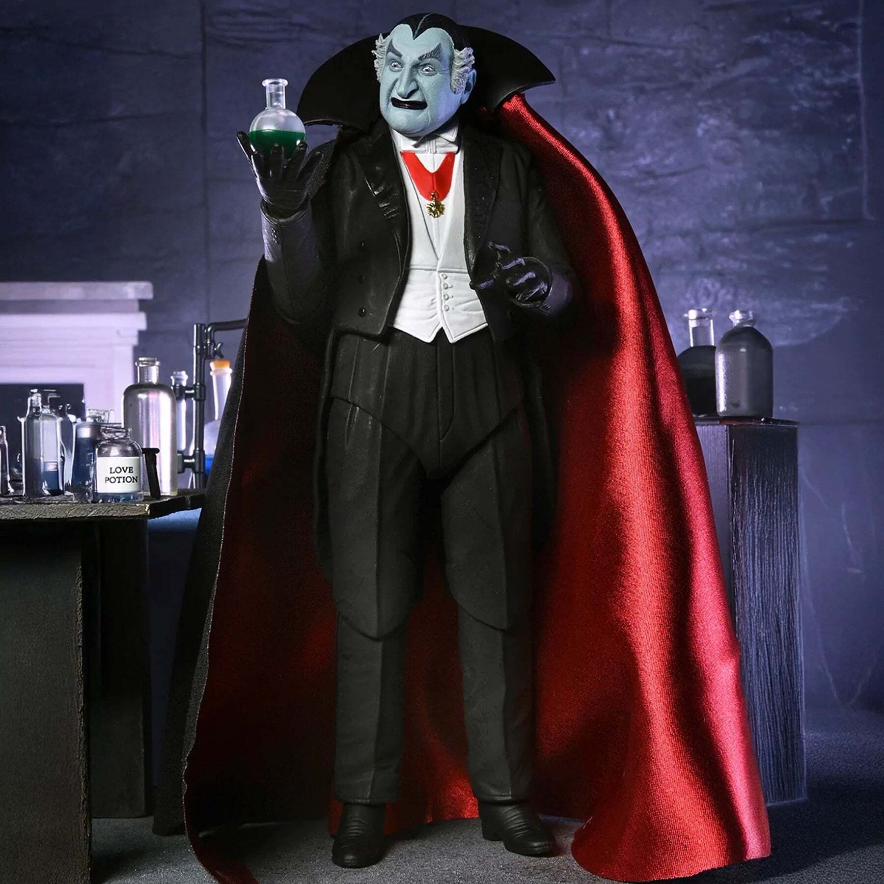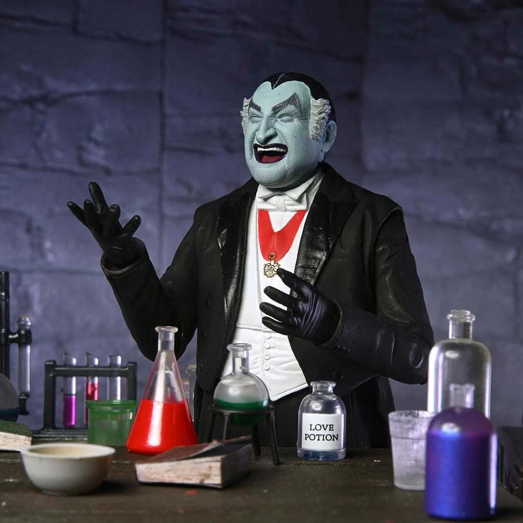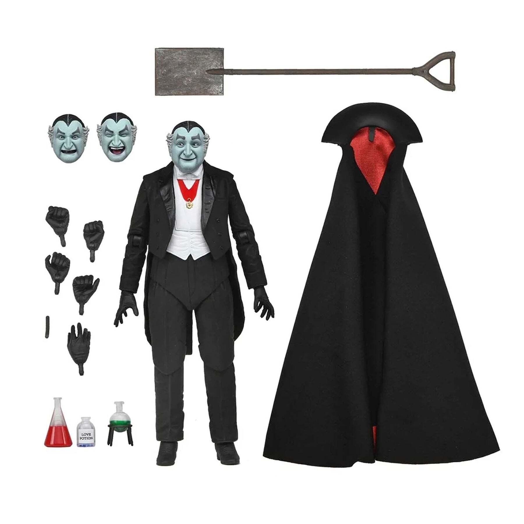 Betreed 1313 Mockingbird Lane met de NECA Ultimate Grandpa Munster-figuur! Deze zeer gedetailleerde, beweegbare figuur van 18 cm, geïnspireerd op de klassieke sitcom The Munsters uit de jaren 60, vangt de ondeugende charme van de geliefde vampier van de televisie. Hoogte: 18 cm