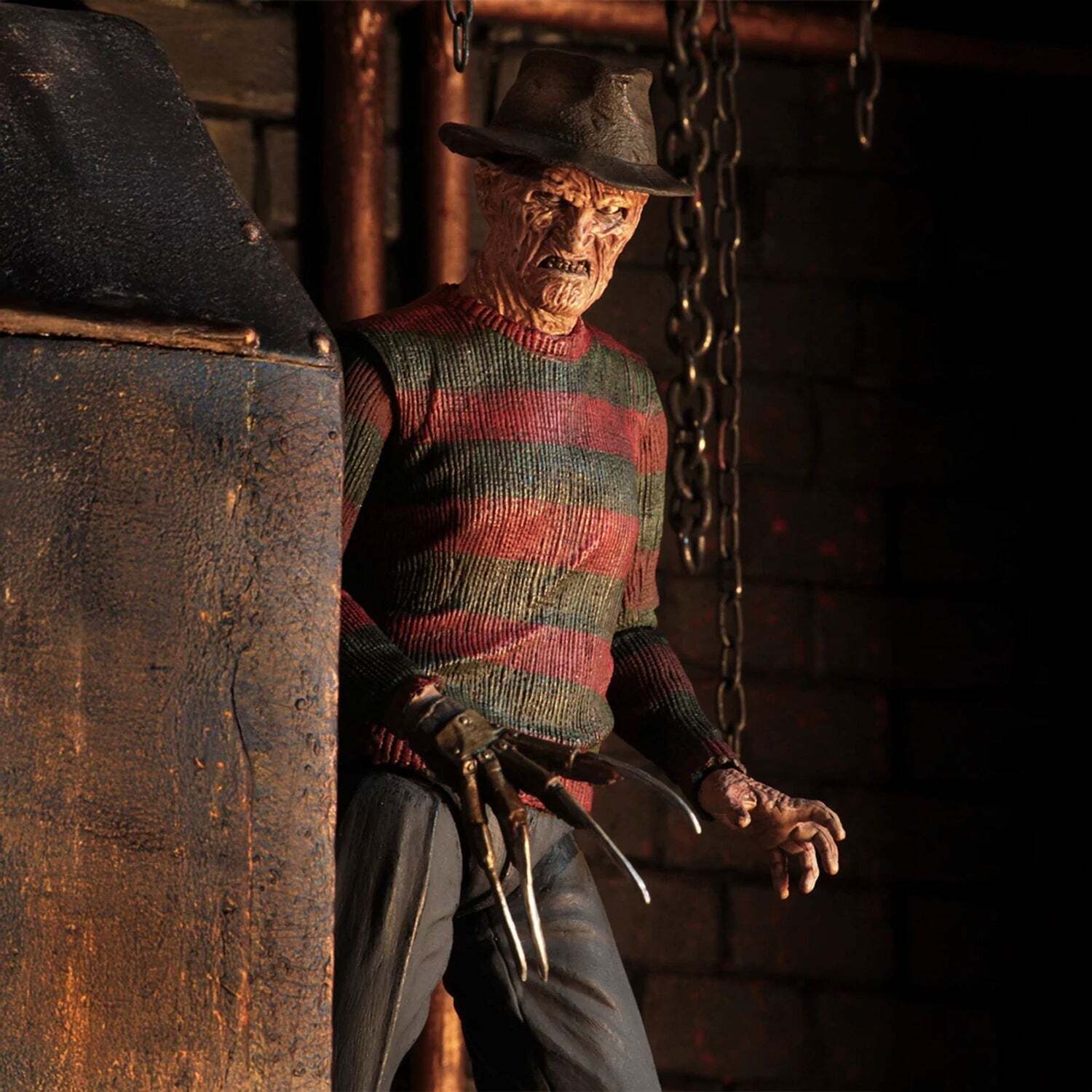 Betreed de nachtmerrie met Ultimate Freddy uit Nightmare on Elm Street Part 2! Dit 18 cm hoge actiefiguur legt Freddy's angstaanjagende details uit het vervolg vast, van zijn iconische gestreepte trui tot zijn dreigende handschoen. Perfect voor verzamelaars en horrorfans, Ultimate Freddy 2 is klaar om je vitrine te vullen en een pronkstuk in je collectie te worden. Mis de kans niet om dit ultieme icoon aan je verzameling toe te voegen! Hoogte: 18 cm