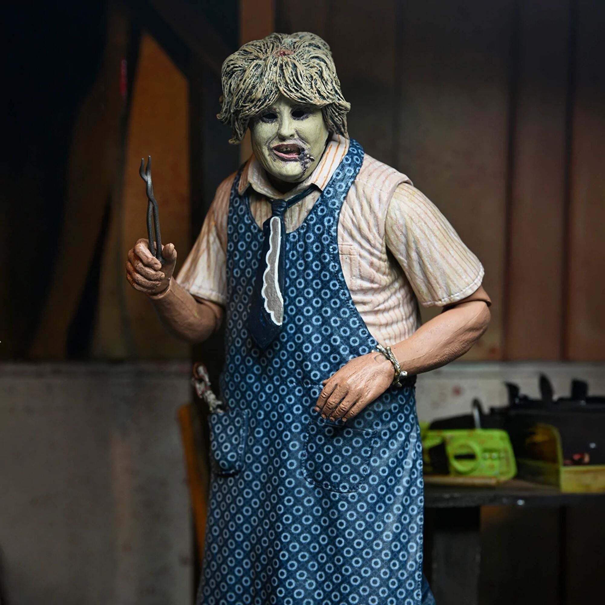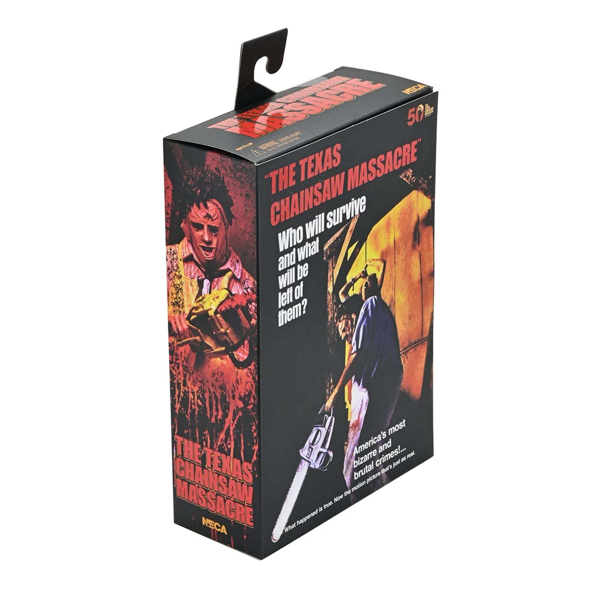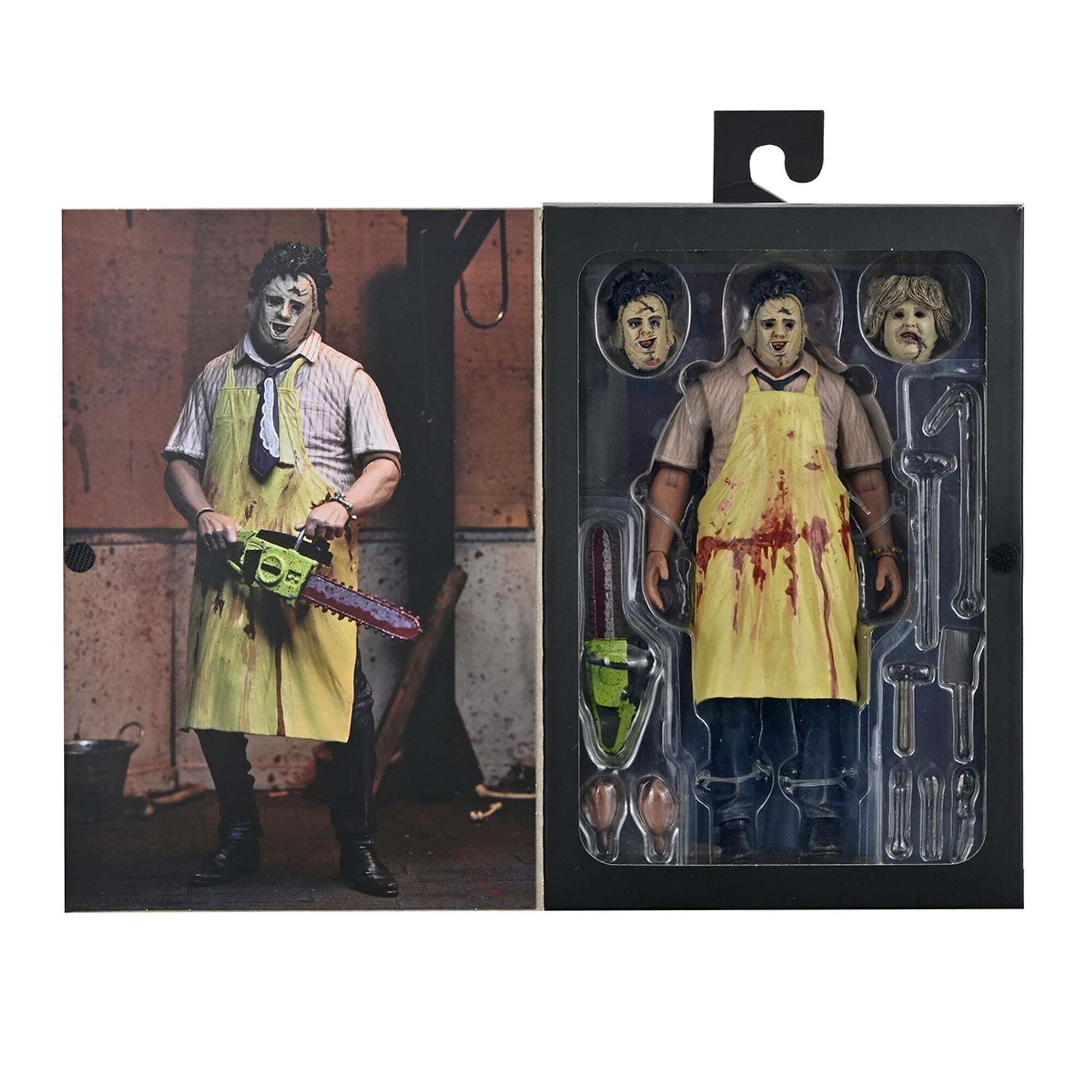 "Om de 50e verjaardag van The Texas Chainsaw Massacre te vieren, brengt NECA Leatherface terug met een gloednieuwe, volledig opnieuw ontworpen Ultimate-versie! Tobe Hoopers cultklassieker uit 1974 bracht een revolutie teweeg in de horrorfilmwereld, en dit is de perfecte gelegenheid om een stukje ervan aan je collectie toe te voegen. Deze zeer beweegbare figuur van 18 cm biedt twee stijlen dankzij de verwisselbare schorten, evenals drie hoofden en verschillende alternatieve handen. Wat accessoires betreft, is hij uitgerust met het iconische arsenaal van de Texaanse slager: een bloederige kettingzaag, hamers, tangen, mes, hakmes, slagershaak, lepel en zelfs een armband. Dit alles wordt gepresenteerd in een verzameldoos met een opening aan de voorkant. Een must-have voor Leatherface-fans... Voeg hem nu toe aan je collectie!"