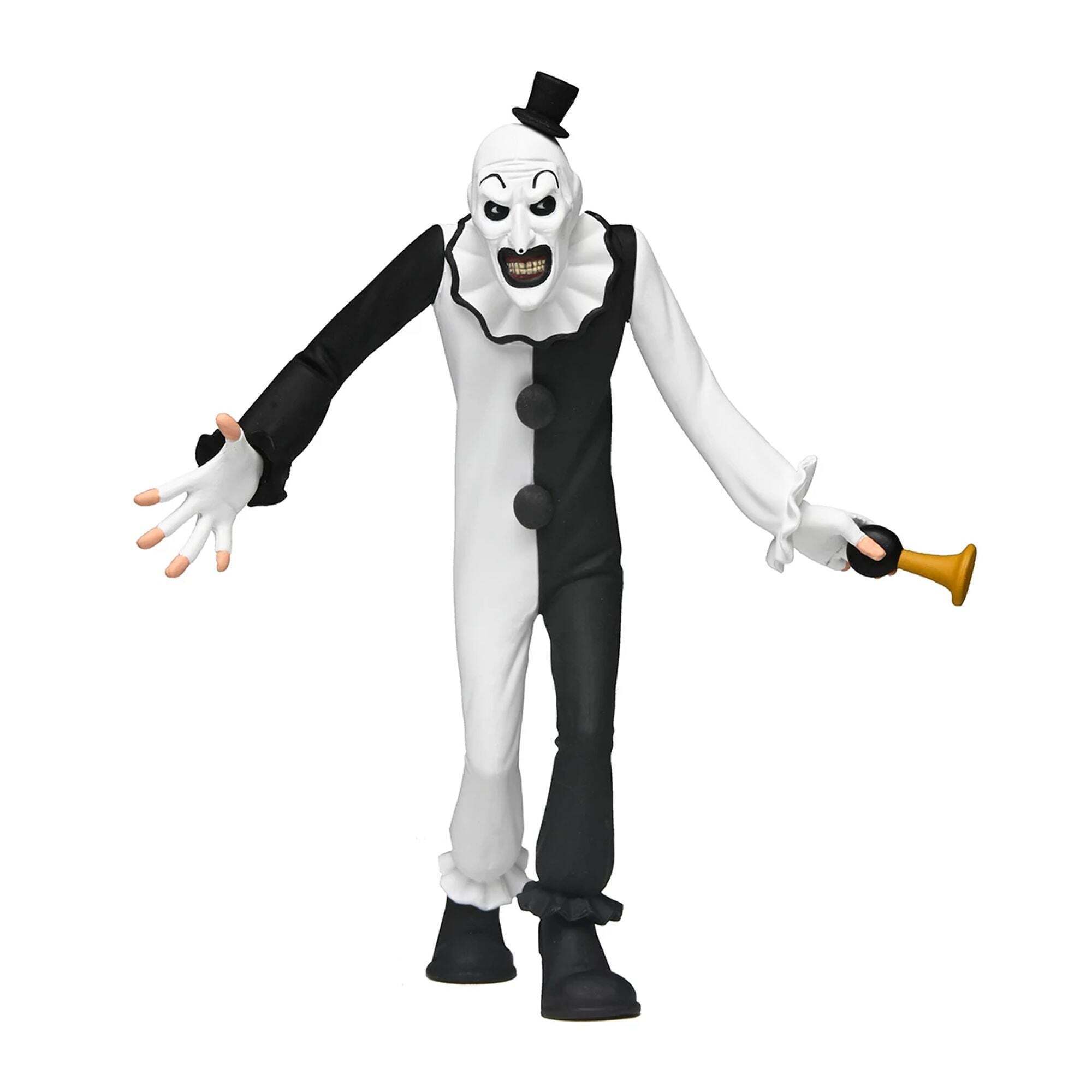 Breng de vrolijkheid van zaterdagochtendcartoons naar je horrorcollectie met de schattige wezentjes van Toony Terrors! Uit Damien Leone's film Terrifier, hier is de iconische en demonische Art de Clown. Hoogte: 15 cm