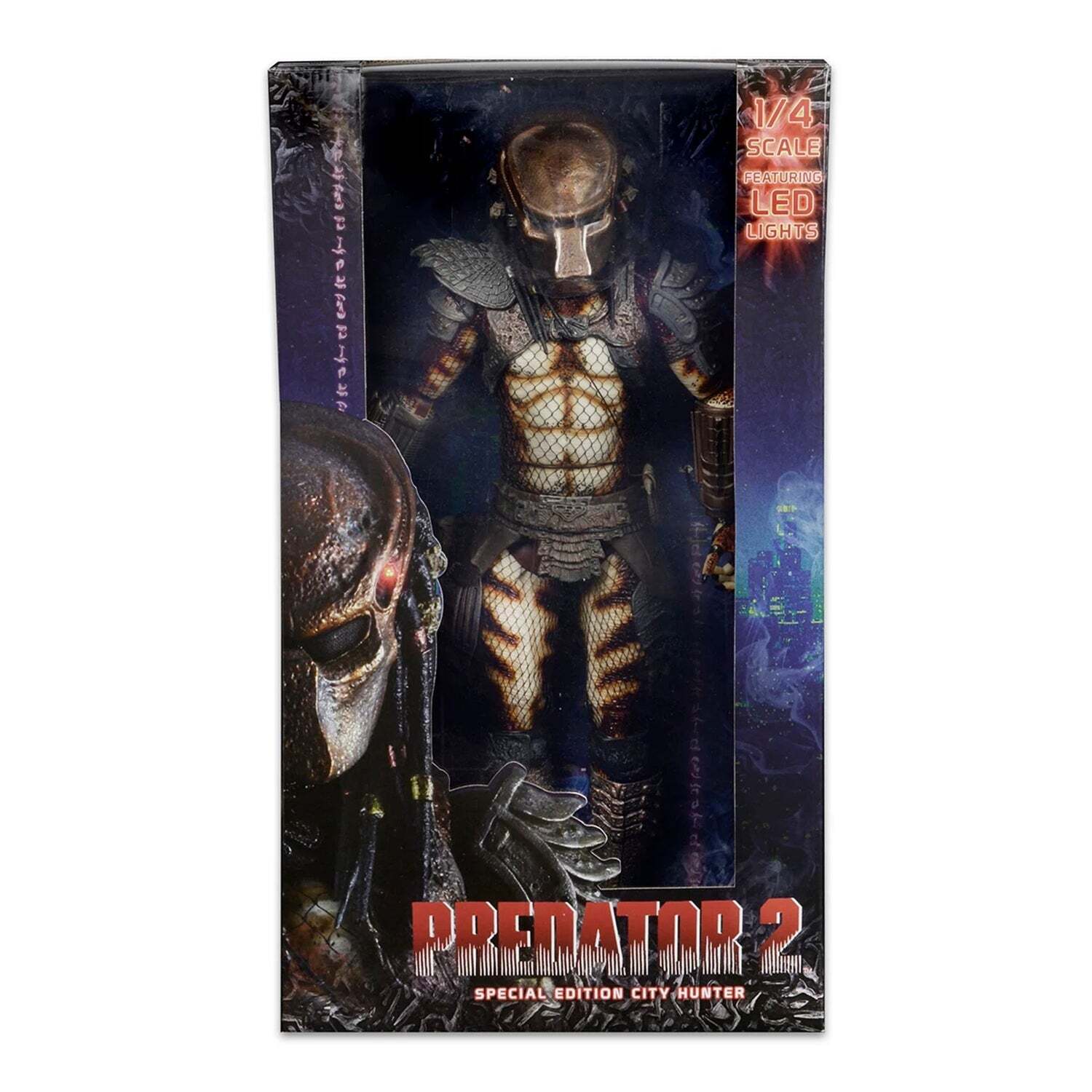 Groter, gedetailleerder en indrukwekkender dan ooit. Deze Predator City Hunter actiefiguur op schaal 1/4, 48 cm hoog, is een gelimiteerde verzameluitgave. Met volledige beweegbaarheid, ongelooflijke details, een robuust ontwerp, talloze accessoires en LED's in het masker en de computer onder de arm, is deze figuur een must-have voor Predator-fans. Alles gepresenteerd in een prachtige vensterdoos.