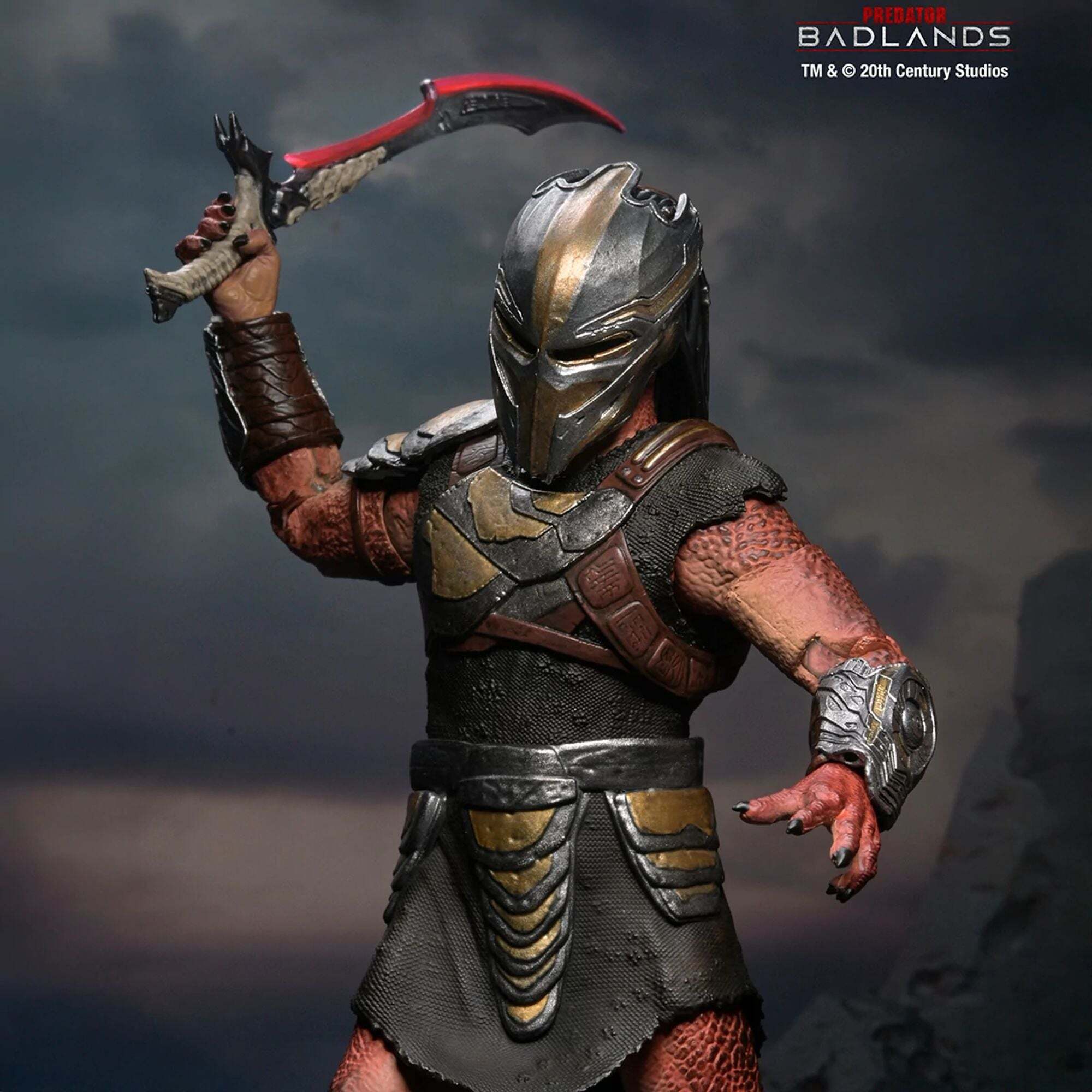 Betreed de meedogenloze jachtgebieden van Predator: Badlands met deze Ultimate Dek (Training Armor) 7” schaal actiefiguur. Deze figuur toont de angstaanjagende krijger Dek in zijn trainingspantser en benadrukt de brute kracht en gevechtsgereedheid van de Predator-soort.