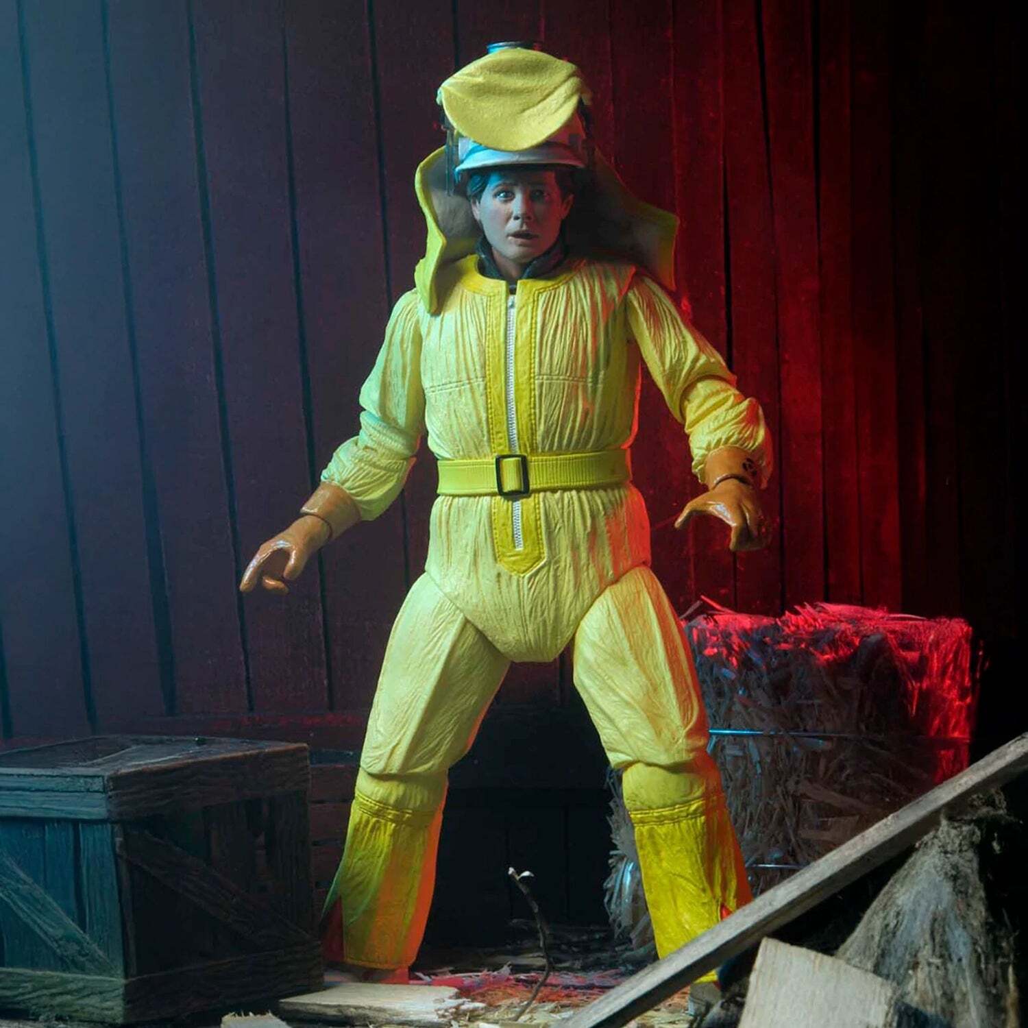"Het is tijd om terug te gaan in de tijd... naar 1955! NECA presenteert met trots de ultieme 'Tales From Space' Marty McFly-figuur, geïnspireerd op de iconische scène uit de film Back to the Future, met de officiële gelijkenis van Michael J. Fox. Marty is gekleed in zijn beschermend pak, als een bezoeker van de planeet Vulcan, en uitgerust met zijn föhn en angstaanjagende 'hersenfusie-apparaat' (cassettespeler). De figuur bevat ook verwisselbare hoofden en capuchons om zijn verschillende gezichtsuitdrukkingen na te bootsen. Dit alles wordt gepresenteerd in een vensterdoos, ideaal voor verzamelaars." Hoogte: 18 cm