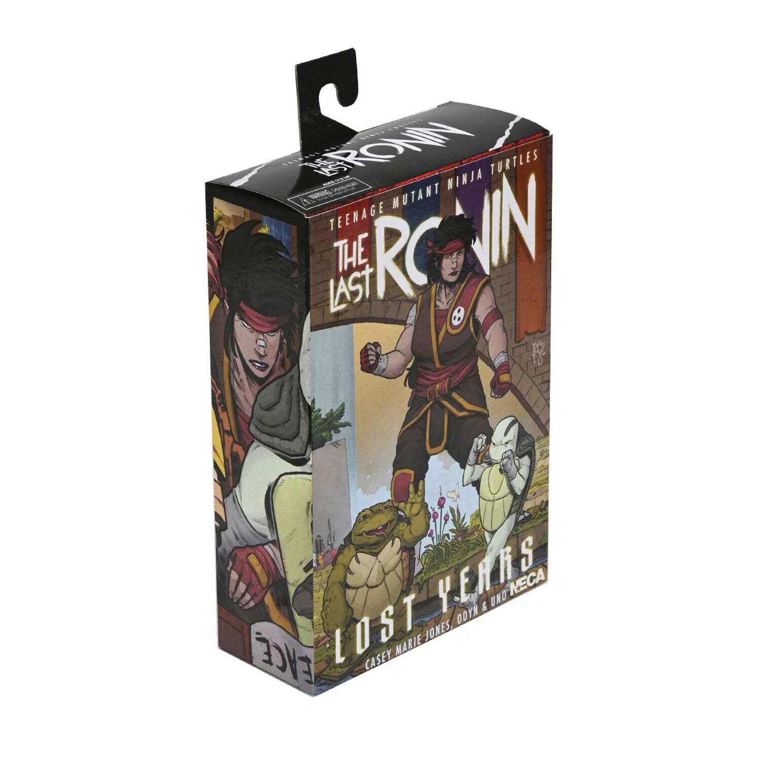 Uit de Teenage Mutant Ninja Turtles-stripreeks: The Last Ronin - The Lost Years! Het verhaal van de eerste missie van de Laatste Ronin gaat verder, terwijl nieuwe geheimen uit het verleden van de Turtles worden onthuld. Ultimate Casey Marie , gekleed in haar sensei-outfit, wordt vergezeld door de schattige baby Odyn en de ondeugende baby Uno. Deze 18 cm grote NECA- figuren zijn zeer gedetailleerd en hebben een geheel nieuw ontwerp. Hoogte: 18 cm