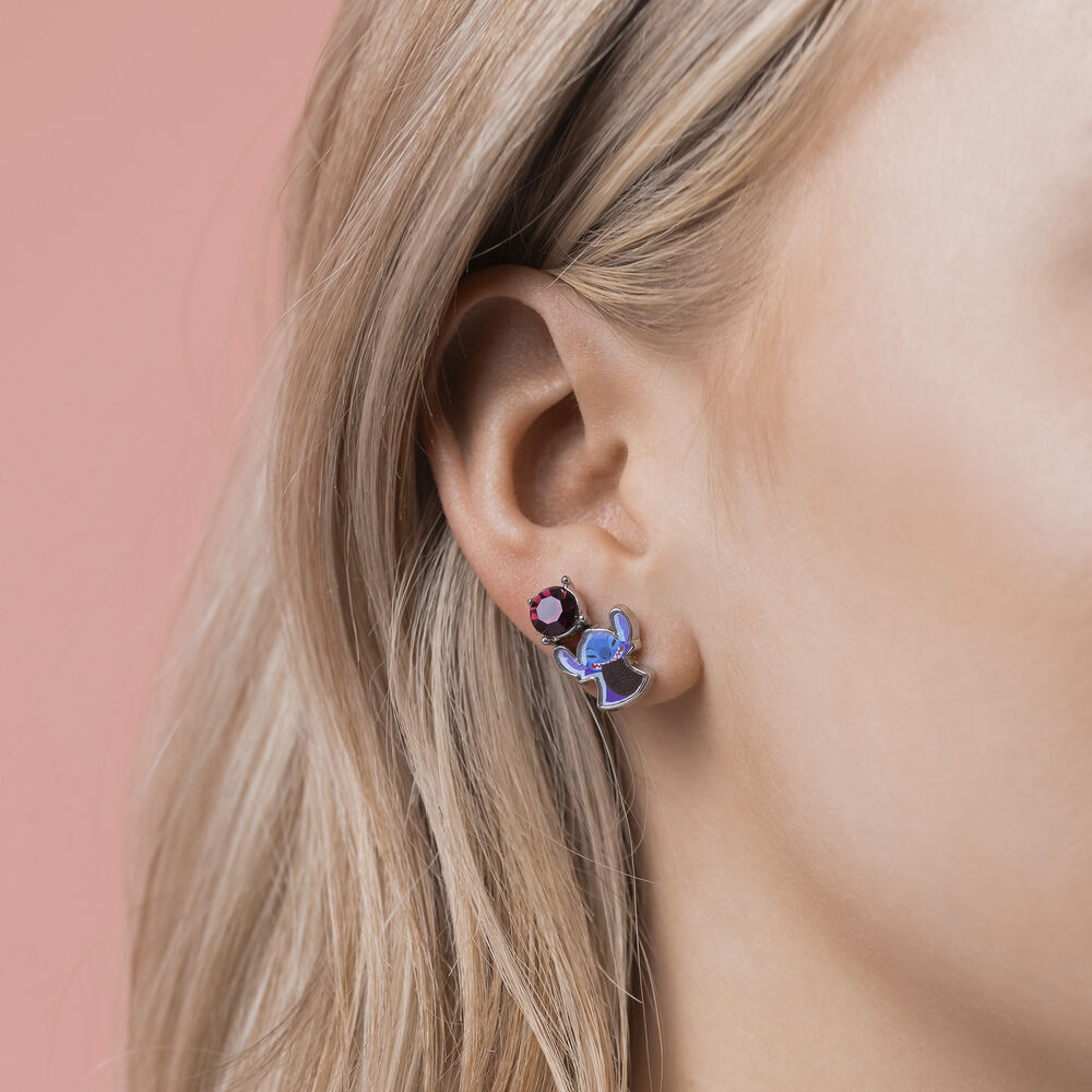 De set bestaat uit 3 sets oorbellen, een set stenen en twee blauwe oorbellen met Stitch -ontwerp.